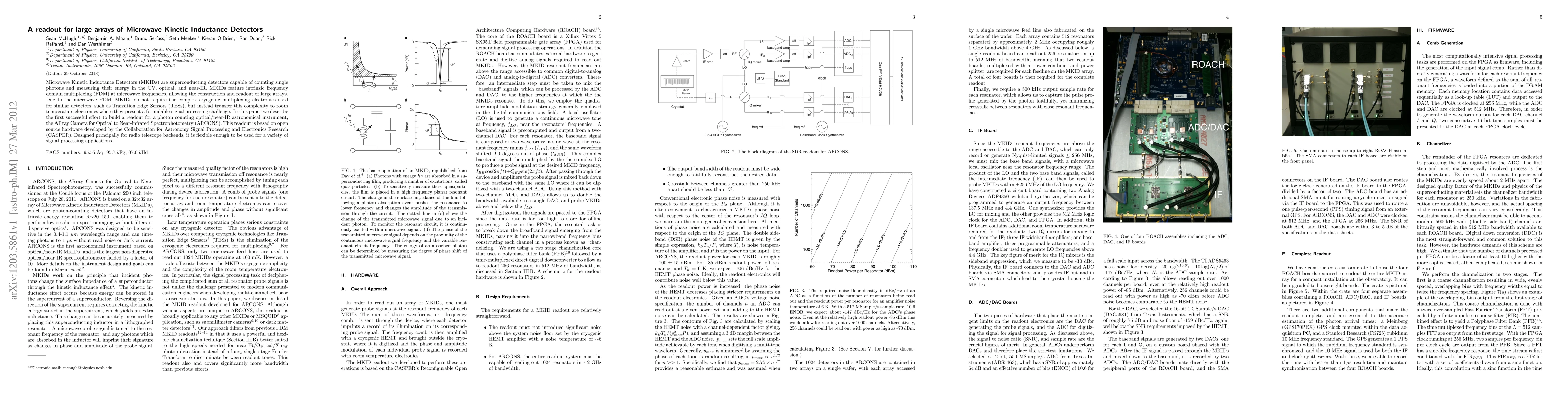 Microwave Kinetic Inductance Detectors (MKIDs) are superconducting detectors capable of counting single photons and measuring their energy in the UV, optical, and near-IR. MKIDs feature intrinsic frequency domain multiplexing (FDM) at microwave frequencies, allowing the construction and readout of large arrays. Due to the microwave FDM, MKIDs do not require the complex cryogenic multiplexing electronics used for similar detectors, such as Transition Edge Sensors (TESs), but instead transfer this complexity to room temperature electronics where they present a formidable signal processing challenge. In this paper we describe the first successful effort to build a readout for a photon counting optical/near-IR astronomical instrument, the ARray Camera for Optical to Near-infrared Spectrophotometry (ARCONS). This readout is based on open source hardware developed by the Collaboration for Astronomy Signal Processing and Electronics Research (CASPER). Designed principally for radio telescope backends, it is flexible enough to be used for a variety of signal processing applications.