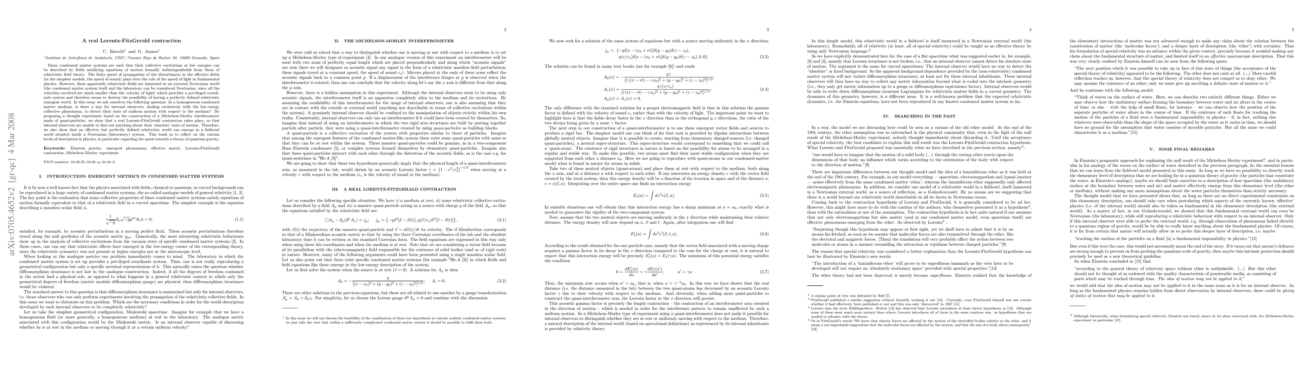 This paper explores whether internal observers in a homogeneous condensed matter medium can detect their motion relative to the medium, proposing a quasi-particle Michelson-Morley interferometer experiment. It concludes that a real Lorentz-FitzGerald contraction occurs, preventing detection of absolute motion and demonstrating the emergence of an effective relativistic world within a Newtonian system.