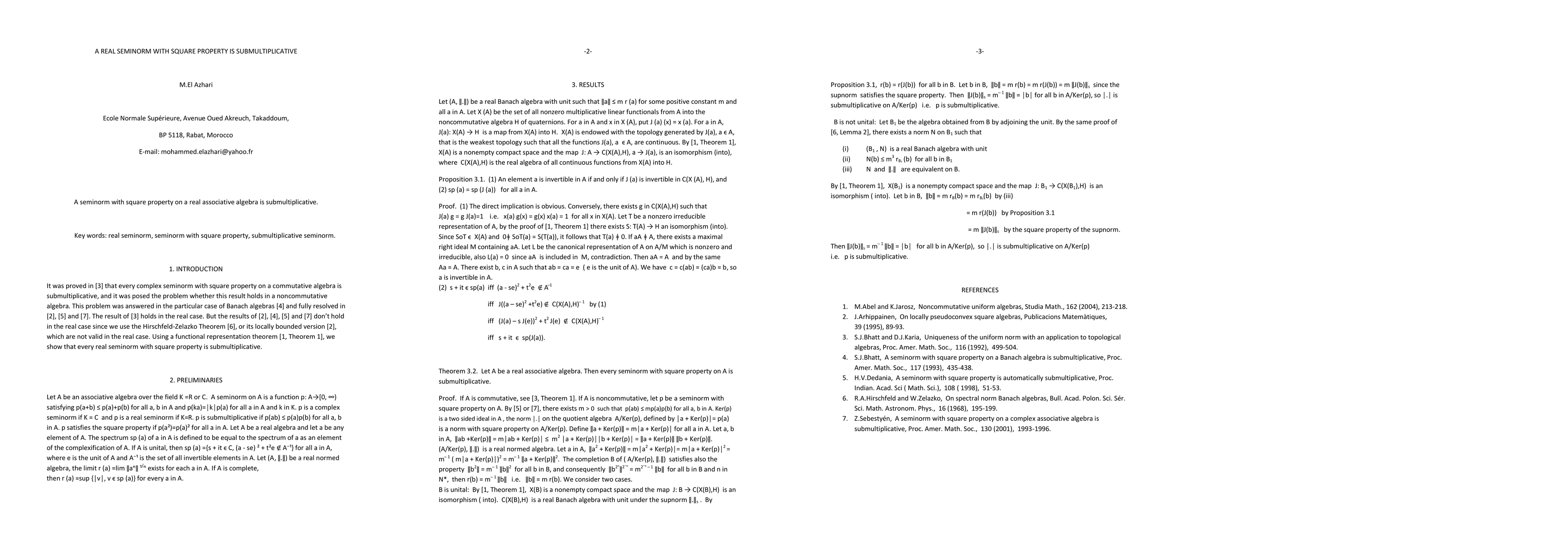 A real seminorm with square property on a real associative algebra is submultiplicative.