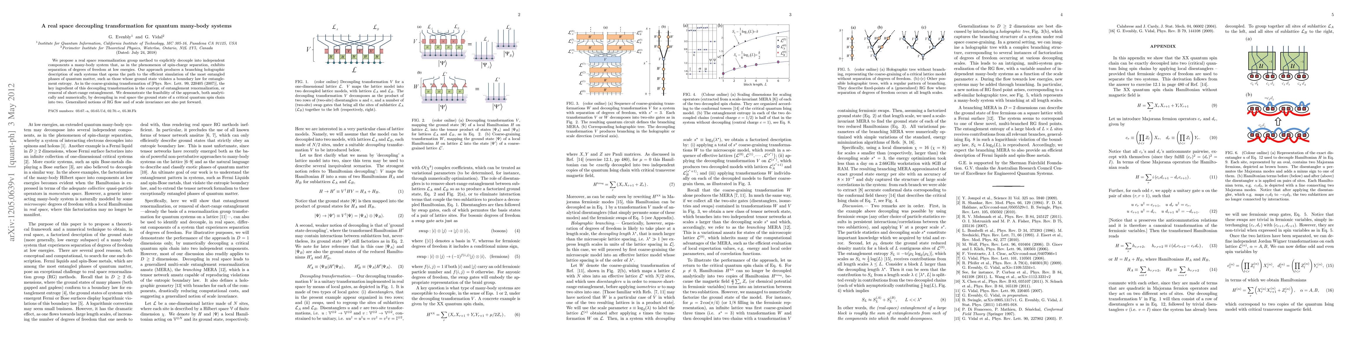 We propose a real space renormalization group method to explicitly decouple into independent components a many-body system that, as in the phenomenon of spin-charge separation, exhibits separation of degrees of freedom at low energies. Our approach produces a branching holographic description of such systems that opens the path to the efficient simulation of the most entangled phases of quantum matter, such as those whose ground state violates a boundary law for entanglement entropy. As in the coarse-graining transformation of [Phys. Rev. Lett. 99, 220405 (2007)], the key ingredient of this decoupling transformation is the concept of entanglement renormalization, or removal of short-range entanglement. We demonstrate the feasibility of the approach, both analytically and numerically, by decoupling in real space the ground state of a critical quantum spin chain into two. Generalized notions of RG flow and of scale invariance are also put forward.