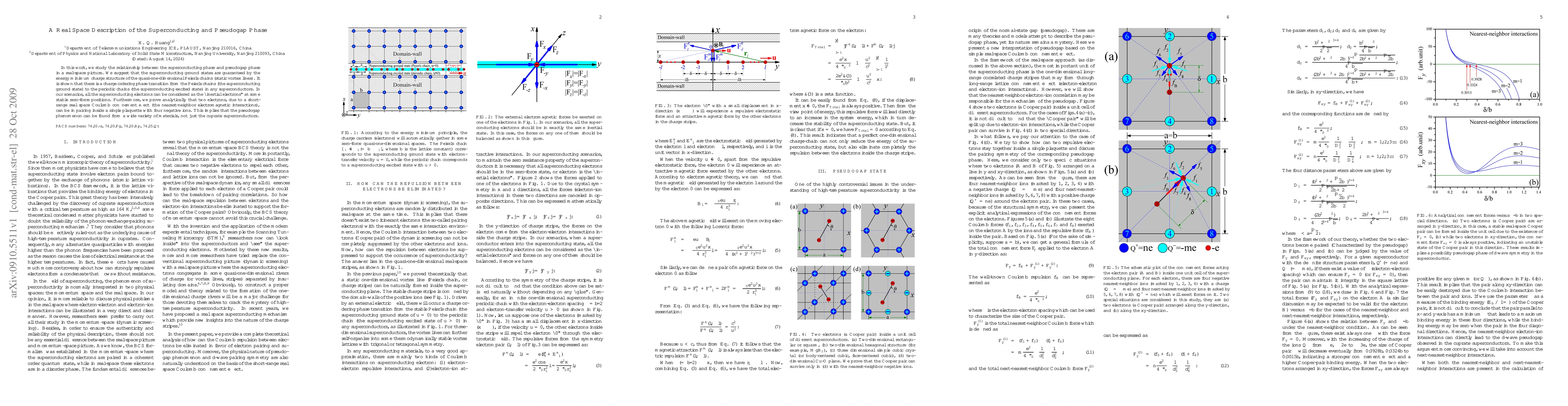 In this work, we study the relationship between the superconducting phase and pseudogap phase in a real-space picture. We suggest that the superconducting ground states are guaranteed by the energy minimum charge structure of the quasi-one-dimensional Peierls chains (static vortex lines). It is shown that there is a charge ordering phase transition from the Peierls chains (the superconducting ground state) to the periodic chains (the superconducting excited state) in any superconductors. In our scenarios, all the superconducting electrons can be considered as the "inertial electrons"at some stable zero-force positions. Furthermore, we prove analytically that two electrons, due to a short-range real space Coulomb confinement effect (the nearest-neighbor electromagnetic interactions), can be in pairing inside a single plaquette with four negative ions. This implies that the pseudogap phenomenon can be found from a wide variety of materials, not just the cuprate superconductors.
