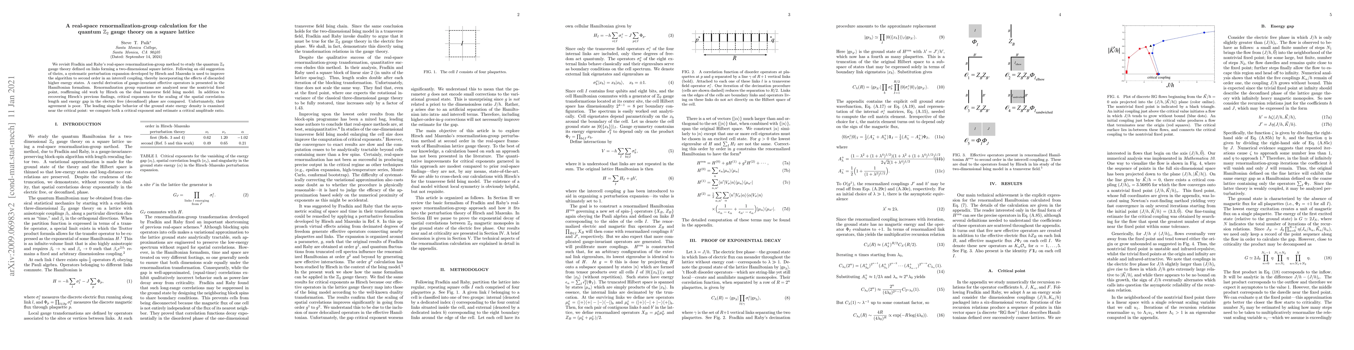 We revisit Fradkin and Raby's real-space renormalization-group method to study the quantum Z_2 gauge theory defined on links forming a two-dimensional square lattice. Following an old suggestion of theirs, a systematic perturbation expansion developed by Hirsch and Mazenko is used to improve the algorithm to second order in an intercell coupling, thereby incorporating the effects of discarded higher energy states. A careful derivation of gauge-invariant effective operators is presented in the Hamiltonian formalism. Renormalization group equations are analyzed near the nontrivial fixed point, reaffirming old work by Hirsch on the dual transverse field Ising model. In addition to recovering Hirsch's previous findings, critical exponents for the scaling of the spatial correlation length and energy gap in the electric free (deconfined) phase are compared. Unfortunately, their agreement is poor. The leading singular behavior of the ground state energy density is examined near the critical point: we compute both a critical exponent and estimate a critical amplitude ratio.