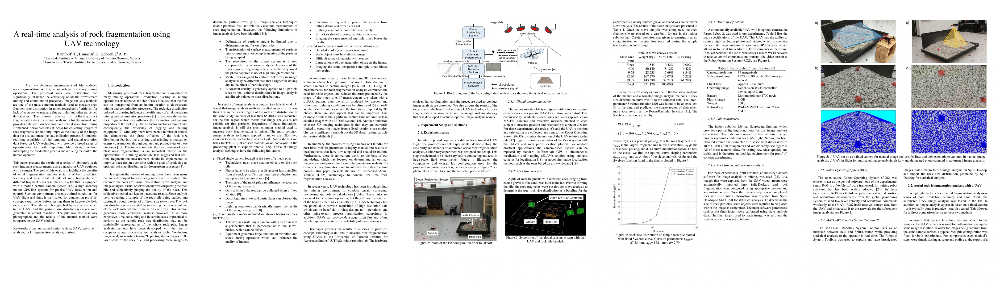 This paper investigates the use of UAV technology for real-time analysis of rock fragmentation in mining operations, demonstrating improved accuracy and efficiency over traditional manual methods. UAV-based image collection provides high temporal and spatial resolution data, enabling better blast design and reducing operator costs.