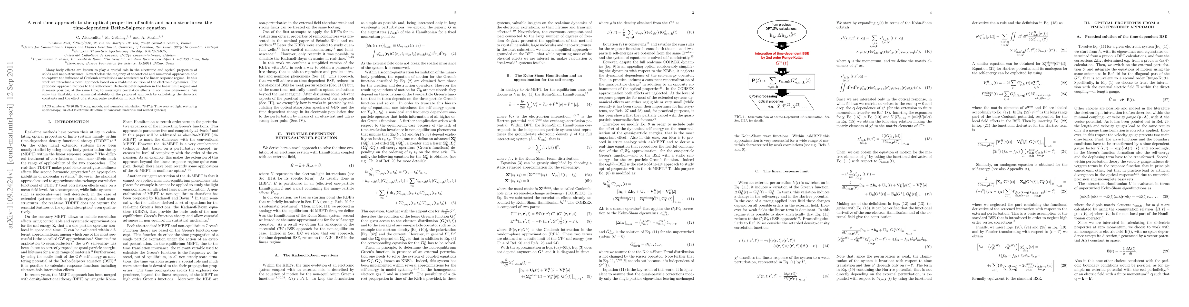 Many-body effects are known to play a crucial role in the electronic and optical properties of solids and nano-structures. Nevertheless the majority of theoretical and numerical approaches able to capture the influence of Coulomb correlations are restricted to the linear response regime. In this work we introduce a novel approach based on a real-time solution of the electronic dynamics.The proposed approach reduces to the well-known Bethe-Salpeter equation in the linear limit regime and it makes possible, at the same time, to investigate correlation effects in nonlinear phenomena. We show the flexibility and numerical stability of the proposed approach by calculating the dielectric constants and the effect of a strong pulse excitation in bulk {\it h}-BN.
