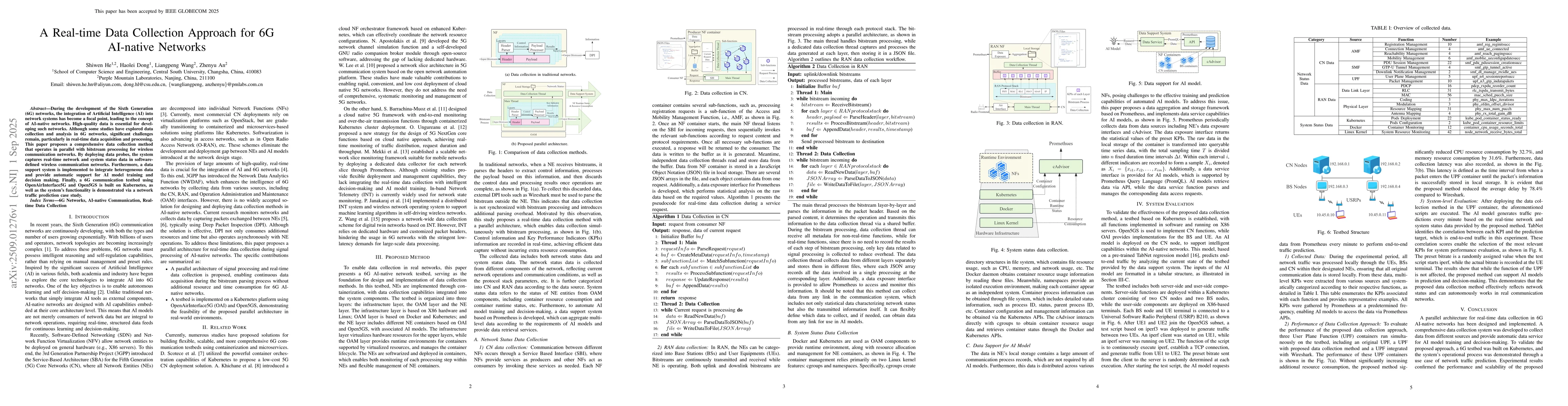 During the development of the Sixth Generation (6G) networks, the integration of Artificial Intelligence (AI) into network systems has become a focal point, leading to the concept of AI-native networks. High quality data is essential for developing such networks. Although some studies have explored data collection and analysis in 6G networks, significant challenges remain, particularly in real-time data acquisition and processing. This paper proposes a comprehensive data collection method that operates in parallel with bitstream processing for wireless communication networks. By deploying data probes, the system captures real-time network and system status data in software-defined wireless communication networks. Furthermore, a data support system is implemented to integrate heterogeneous data and provide automatic support for AI model training and decision making. Finally, a 6G communication testbed using OpenAirInterface5G and Open5GS is built on Kubernetes, as well as the system's functionality is demonstrated via a network traffic prediction case study.
