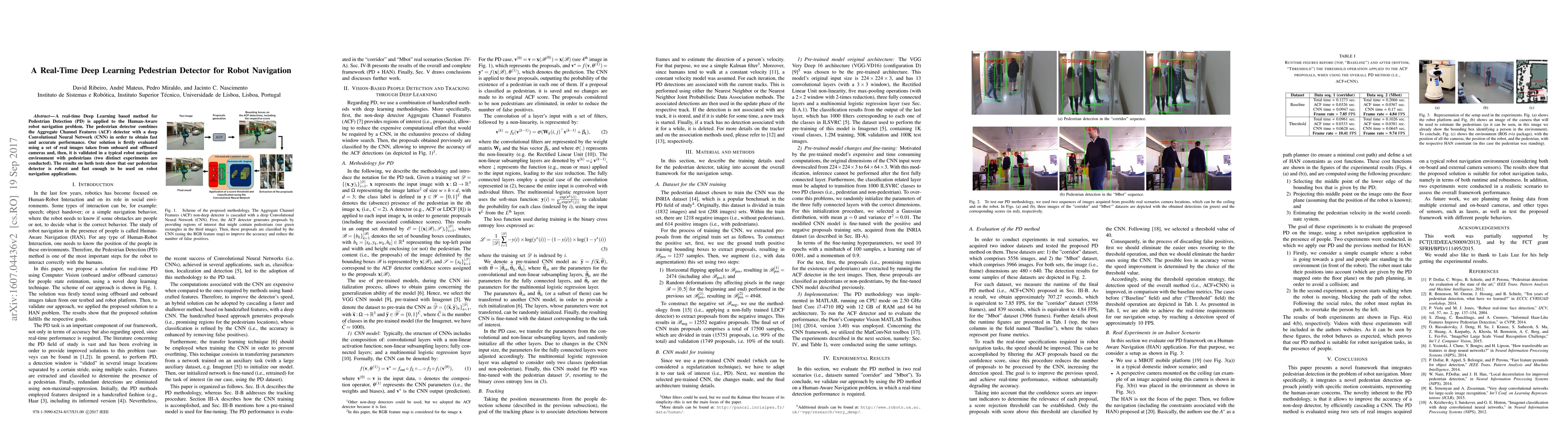 This paper presents a real-time deep learning pedestrian detector combining Aggregate Channel Features with a Convolutional Neural Network for fast and accurate human-aware robot navigation, validated through real-world and simulated pedestrian environments. Results demonstrate the detector's robustness and speed suitable for practical robot navigation.