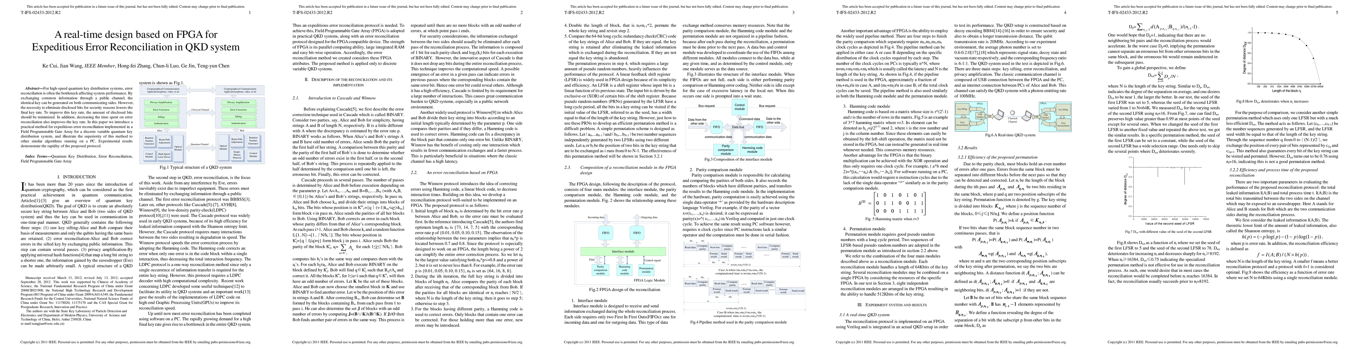 Researchers developed a real-time FPGA-based method for expeditious error reconciliation in quantum key distribution systems, improving system performance and key rate.