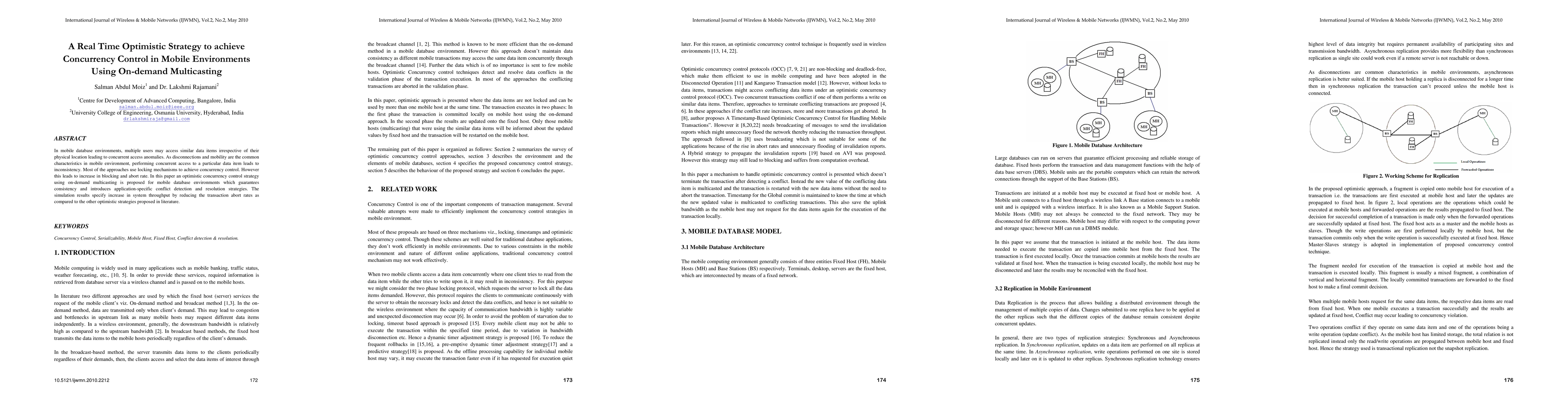 This paper proposes an optimistic concurrency control strategy using on-demand multicasting for mobile database environments to address inconsistencies from concurrent access. The approach reduces transaction abort rates and increases system throughput compared to traditional locking mechanisms.