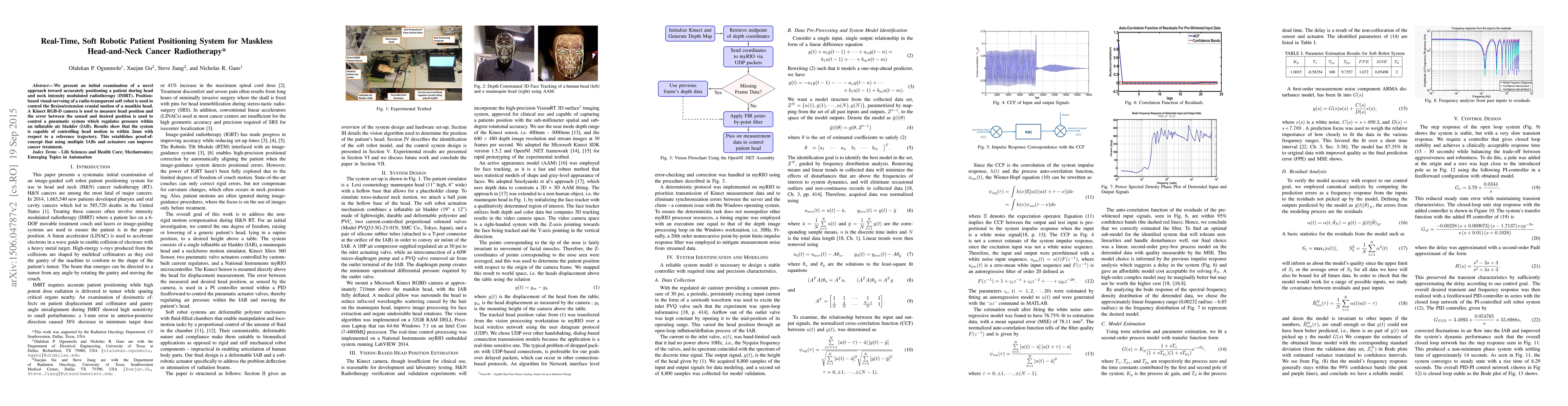 This study investigates a real-time soft robotic system for precise patient positioning during head-and-neck cancer radiotherapy, utilizing a radio-transparent soft robot and a Kinect camera for motion control. The system demonstrates accuracy in controlling head motion within 2mm, proving the concept for enhanced cancer treatment.