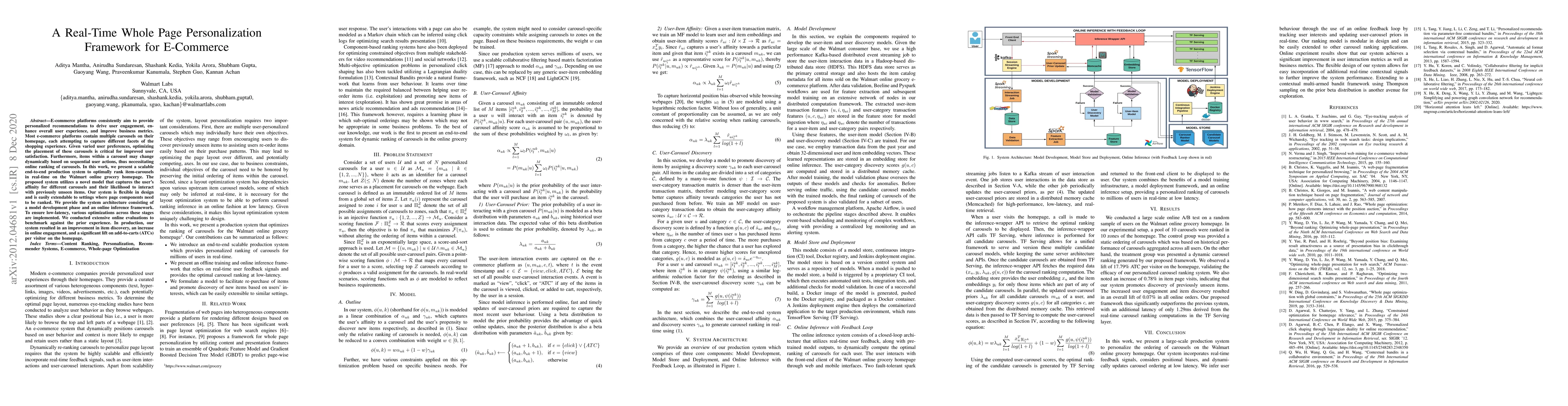 This research paper introduces a real-time whole page personalization framework for e-commerce that optimizes carousel placement and item ranking to improve user engagement and business metrics.