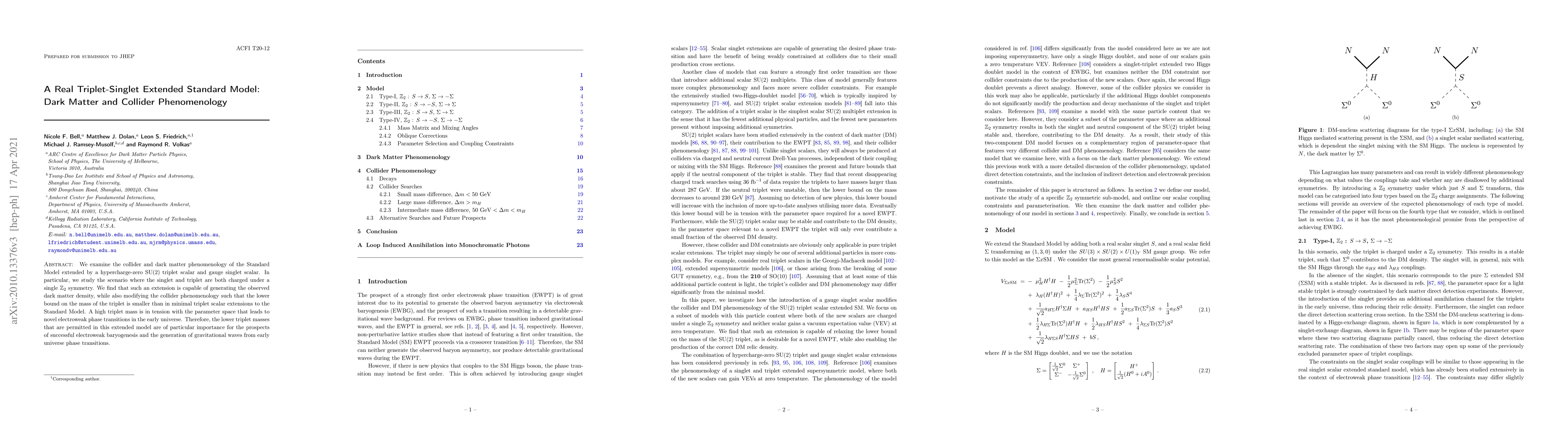 We examine the collider and dark matter phenomenology of the Standard Model extended by a hypercharge-zero SU(2) triplet scalar and gauge singlet scalar. In particular, we study the scenario where the singlet and triplet are both charged under a single $\mathbb{Z}_2$ symmetry. We find that such an extension is capable of generating the observed dark matter density, while also modifying the collider phenomenology such that the lower bound on the mass of the triplet is smaller than in minimal triplet scalar extensions to the Standard Model. A high triplet mass is in tension with the parameter space that leads to novel electroweak phase transitions in the early universe. Therefore, the lower triplet masses that are permitted in this extended model are of particular importance for the prospects of successful electroweak baryogenesis and the generation of gravitational waves from early universe phase transitions.