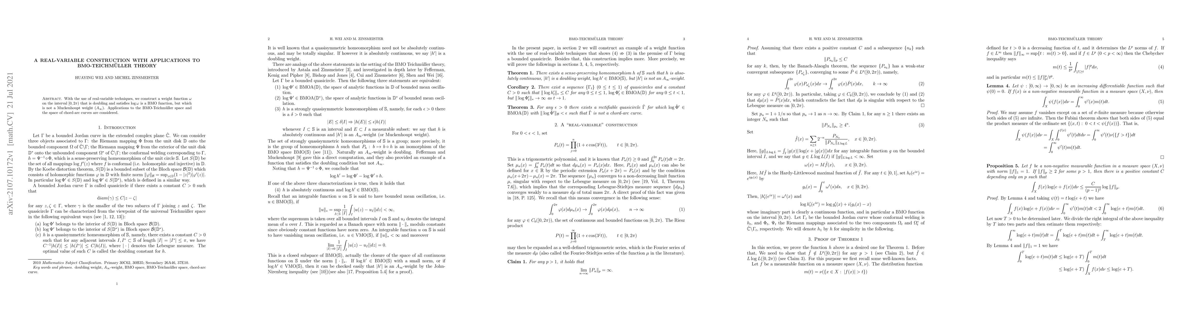 With the use of real-variable techniques, we construct a weight function $\omega$ on the interval $[0, 2\pi)$ that is doubling and satisfies $\log \omega$ is a BMO function, but which is not a Muckenhoupt weight ($A_\infty$). Applications to the BMO-Teichm\"uller space and the space of chord-arc curves are considered.