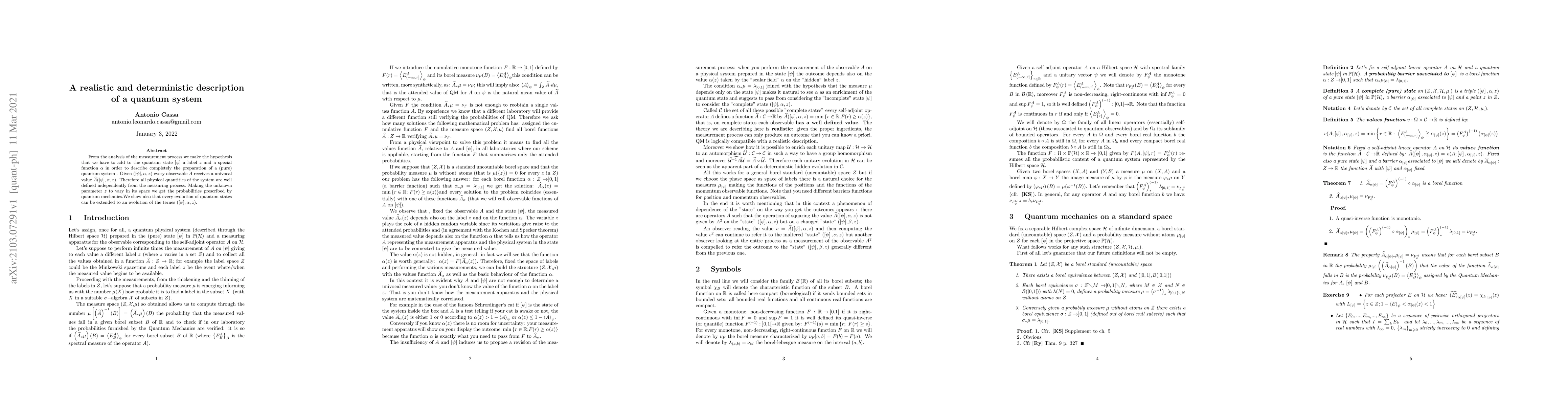 From the analysis of the measurement process we make the hypothesis that we have to add to the quantum state psi a label z and a special function alpha in order to describe completely the preparation of a (pure) quantum system . Given such a terne every observable A receives a univocal value . Therefore all physical quantities of the system are well defined independently from the measuring process. Making the unknown parameter z to vary in its space we get the probabilities prescribed by quantum mechanics.We show also that every evolution of quantum states can be extended to an evolution of the ternes.
