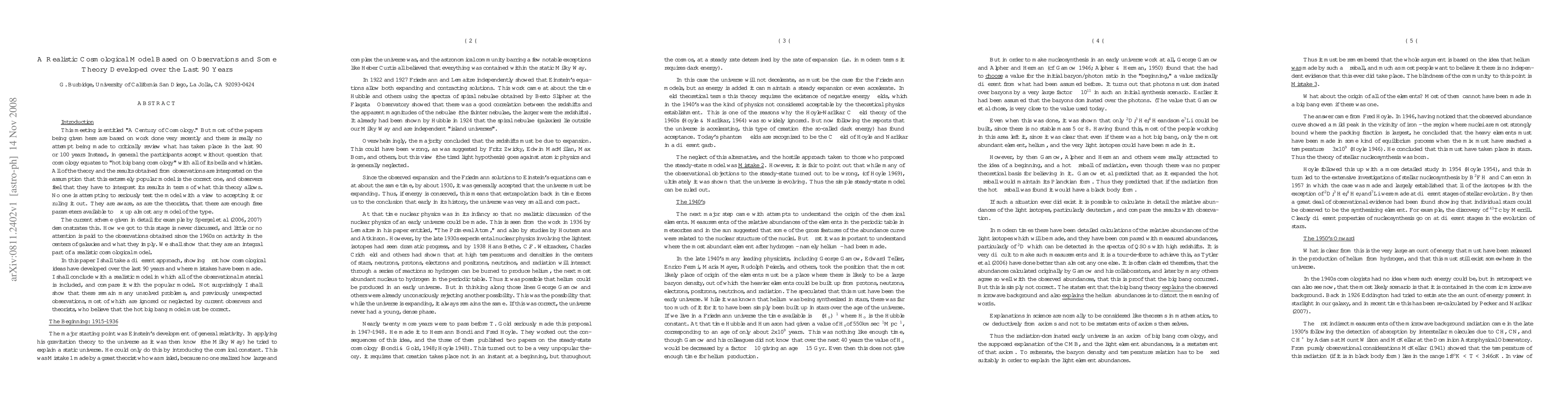 This meeting is entitled "A Century of Cosmology." But most of the papers being given here are based on work done very recently and there is really no attempt being made to critically review what has taken place in the last 90 or 100 years. Instead, in general the participants accept without question that cosmology equates to "hot big bang cosmology" with all of its bells and whistles. All of the theory and the results obtained from observations are interpreted on the assumption that this extremely popular model is the correct one, and observers feel that they have to interpret its results in terms of what this theory allows. No one is attempting to seriously test the model with a view to accepting it or ruling it out. They are aware, as are the theorists, that there are enough free parameters available to fix up almost any model of the type. The current scheme given in detail for example by Spergel et al (206, 2007) demonstrates this. How we got to this stage is never discussed, and little or no attention is paid to the observations obtained since the 1960s on activity in the centers of galaxies and what they imply. We shall show that they are an integral part of a realistic cosmological model. In this paper I shall take a different approach, showing first how cosmological ideas have developed over the last 90 years and where mistakes have been made. I shall conclude with a realistic model in which all of the observational material is included, and compare it with the popular model. Not surprisingly I shall show that there remain many unsolved problems, and previously unexpected observations, most of which are ignored or neglected by current observers and theorists, who believe that the hot big bang model must be correct.