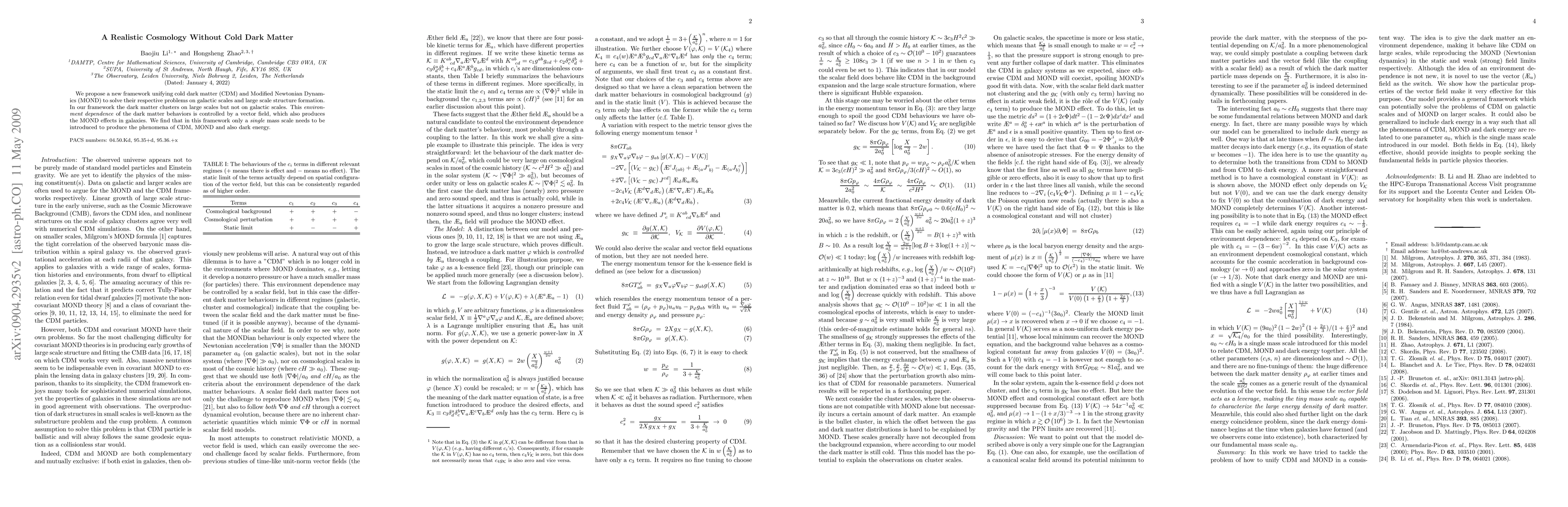 The research proposes a new framework unifying cold dark matter (CDM) and Modified Newtonian Dynamics (MOND) using a vector field that controls the environment dependence of dark matter behaviors. This framework introduces only a single mass scale to produce CDM, MOND, and dark energy phenomena.