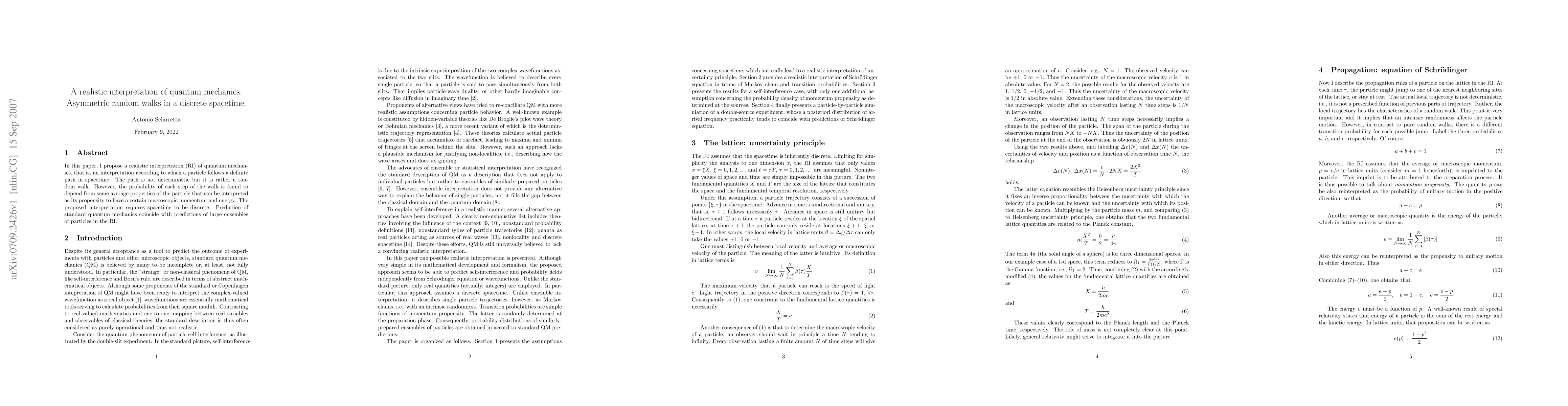 This paper introduces a realistic interpretation of quantum mechanics where particles follow a definite, albeit random, path in discrete spacetime. The asymmetric random walk model accounts for the particle's propensity to have certain macroscopic momentum and energy, aligning predictions of standard quantum mechanics with those of large particle ensembles.