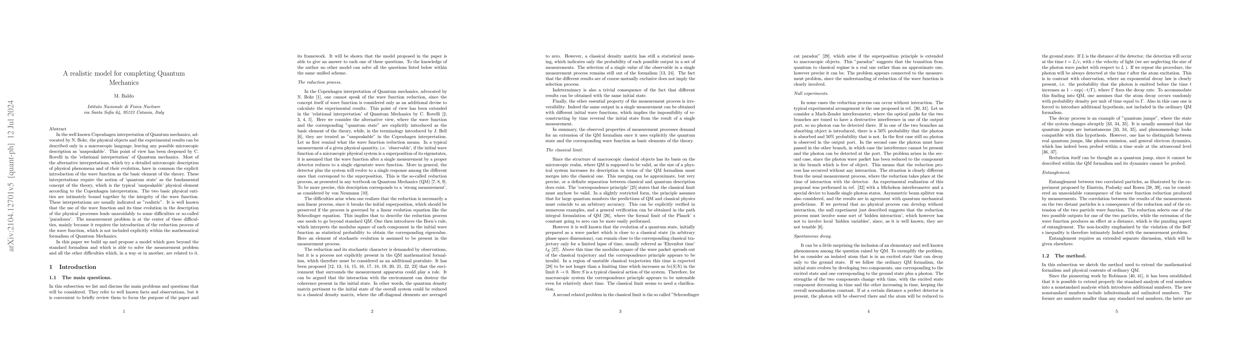 In the well known Copenhagen interpretation of Quantum mechanics, advocated by N. Bohr, the physical objects and the experimental results can be described only in a macroscopic language, leaving any possible microscopic description as unspeakable. This point of view has been deepened by C. Rovelli in the relational interpretation of Quantum mechanics. Most of the alternative interpretations, which try a detailed microscopic description of physical phenomena and of their evolution, have in common the explicit introduction of the wave function as the basic element of the theory. These interpretations require the notion of quantum state as the fundamental concept of the theory, which is the typical unspeakable physical element according to the Copenhagen interpretation. The two basic physical entities are intimately bound together by the integrity of the wave function. These interpretations are usually indicated as realistic. It is well known that the use of the wave function and its time evolution in the description of the physical processes leads unavoidably to some difficulties or so-called paradoxes. The measurement problem is at the center of these difficulties, mainly because it requires the introduction of the reduction process of the wave function, which is not included explicitly within the mathematical formalism of Quantum Mechanics. In this paper we build up and propose a model which goes beyond the standard formalism and which is able to solve the measurement problem and all the other difficulties which, in a way or in another, are related to it.