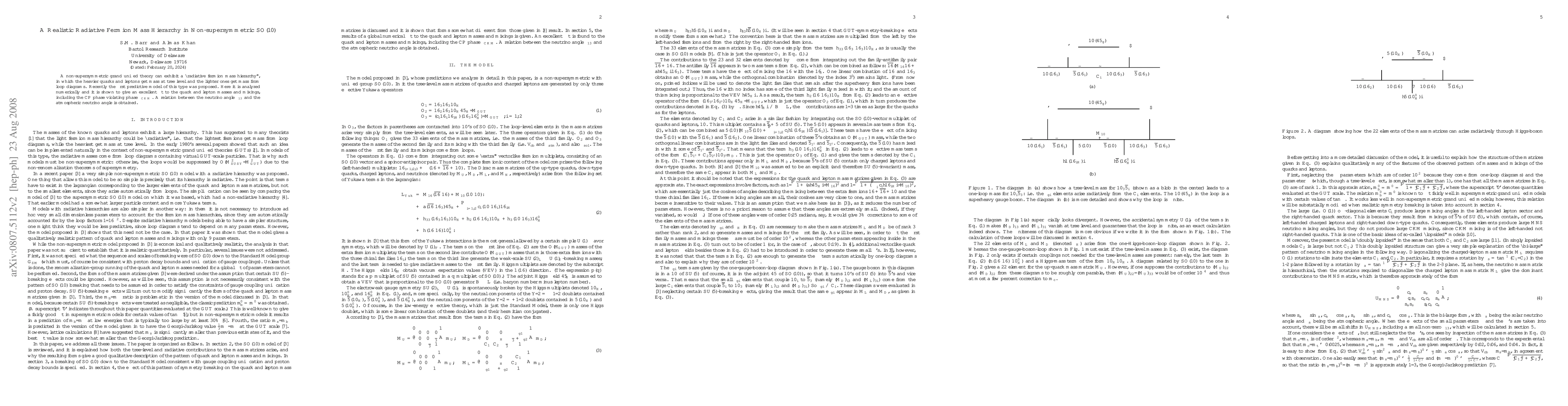 This paper explores a non-supersymmetric SO(10) grand unified theory that generates a "radiative fermion mass hierarchy," fitting quark and lepton masses and mixings, including the CP phase $\delta_{CKM}$, and derives a relationship between neutrino angles $\theta_{13}$ and the atmospheric neutrino angle.