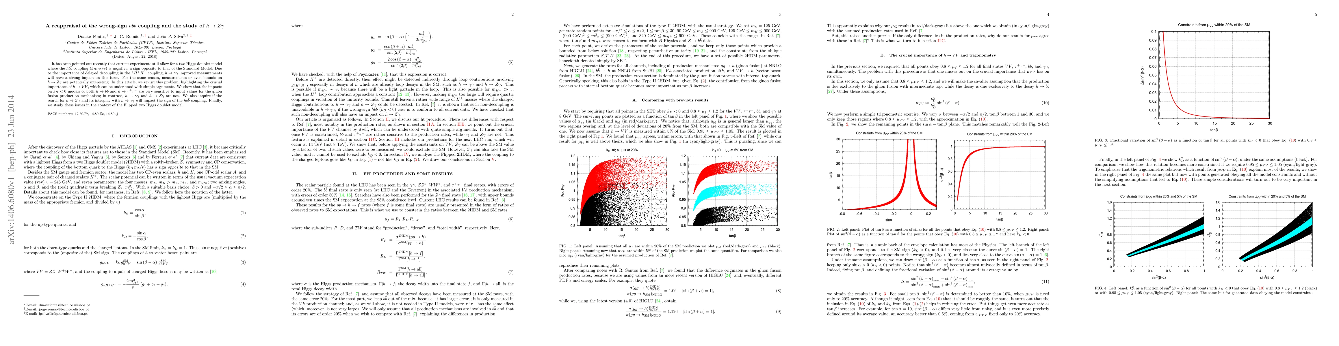 It has been pointed out recently that current experiments still allow for a two Higgs doublet model where the $h b \bar{b}$ coupling ($k_D m_b/v$) is negative; a sign opposite to that of the Standard Model. Due to the importance of delayed decoupling in the $h H^+ H^-$ coupling, $h \rightarrow \gamma \gamma$ improved measurements will have a strong impact on this issue. For the same reason, measurements or even bounds on $h \rightarrow Z \gamma$ are potentially interesting. In this article, we revisit this problem, highlighting the crucial importance of $h \rightarrow VV$, which can be understood with simple arguments. We show that the impacts on $k_D<0$ models of both $h \rightarrow b \bar{b}$ and $h \rightarrow \tau^+ \tau^-$ are very sensitive to input values for the gluon fusion production mechanism; in contrast, $h \rightarrow \gamma \gamma$ and $h \rightarrow Z \gamma$ are not. We also inquire if the search for $h \rightarrow Z \gamma$ and its interplay with $h \rightarrow \gamma \gamma$ will impact the sign of the $h b \bar{b}$ coupling. Finally, we study these issues in the context of the Flipped two Higgs doublet model.