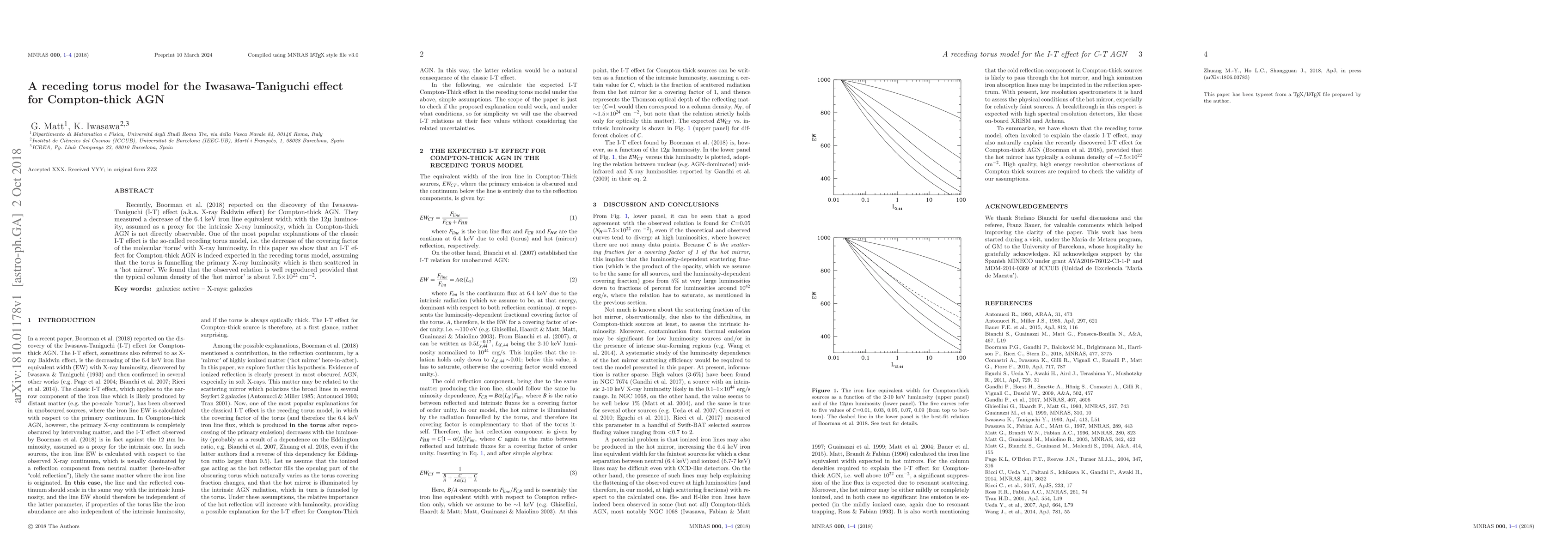 This paper demonstrates that the receding torus model can explain the Iwasawa-Taniguchi effect in Compton-thick AGN, where the 6.4 keV iron line equivalent width decreases with X-ray luminosity, by assuming the torus funnels primary X-ray luminosity into a "hot mirror." The observed relation is well reproduced with a typical column density of 7.5x10^{22} cm^{-2}.