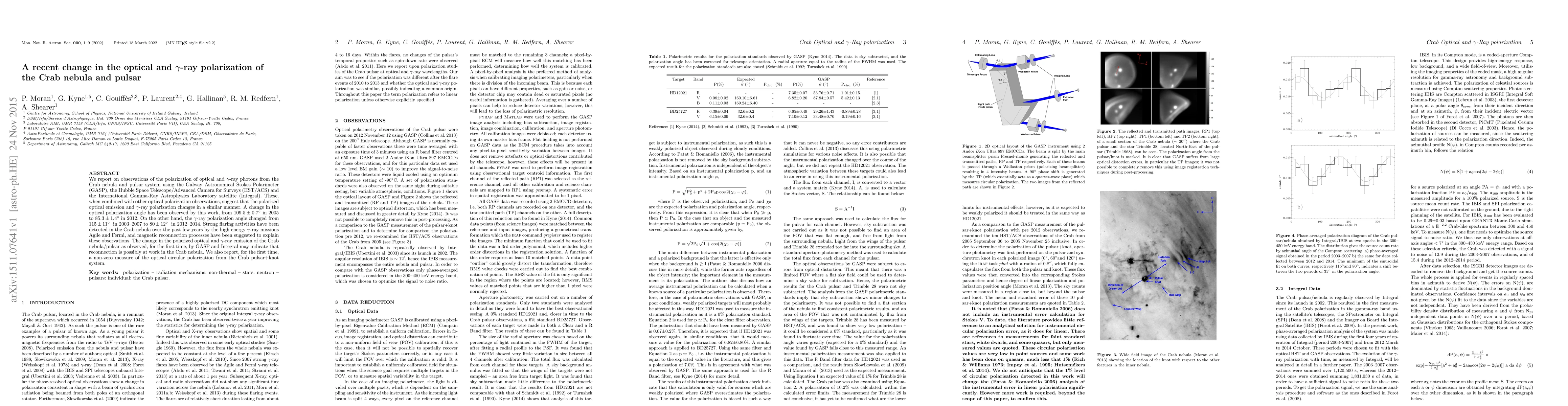 We report on observations of the polarization of optical and {\gamma}-ray photons from the Crab nebula and pulsar system using the Galway Astronomical Stokes Polarimeter (GASP), the Hubble Space Telescope/Advanced Camera for Surveys (HST/ACS) and the International Gamma-Ray Astrophysics Laboratory satellite (Integral). These, when combined with other optical polarization observations, suggest that the polarized optical emission and {\gamma}-ray polarization changes in a similar manner. A change in the optical polarization angle has been observed by this work, from 109.5 \pm 0.7\deg in 2005 to 85.3 \pm 1.4 \deg in 2012. On the other hand, the {\gamma}-ray polarization angle changed from 115 \pm 11 \deg in 2003-2007 to 80 \pm 12 \deg in 2012-2014. Strong flaring activities have been detected in the Crab nebula over the past few years by the high energy {\gamma}-ray missions Agile and Fermi, and magnetic reconnection processes have been suggested to explain these observations. The change in the polarized optical and {\gamma}-ray emission of the Crab nebula/pulsar as observed, for the first time, by GASP and Integral may indicate that reconnection is possibly at work in the Crab nebula. We also report, for the first time, a non-zero measure of the optical circular polarization from the Crab pulsar+knot system.