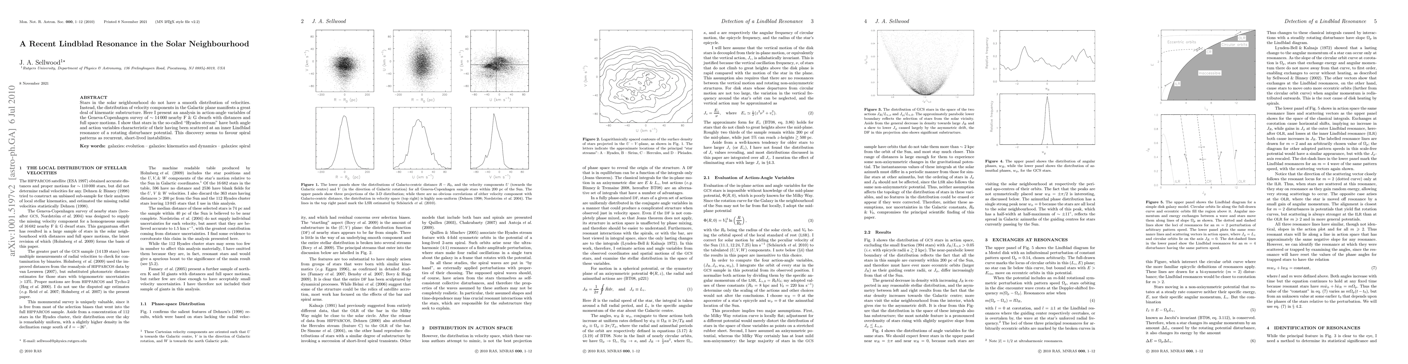 The paper introduces a method to identify kinematic substructures using action-angle variables and confirms the presence of an ILR in the solar neighborhood, providing insights into spiral structure generation theories.