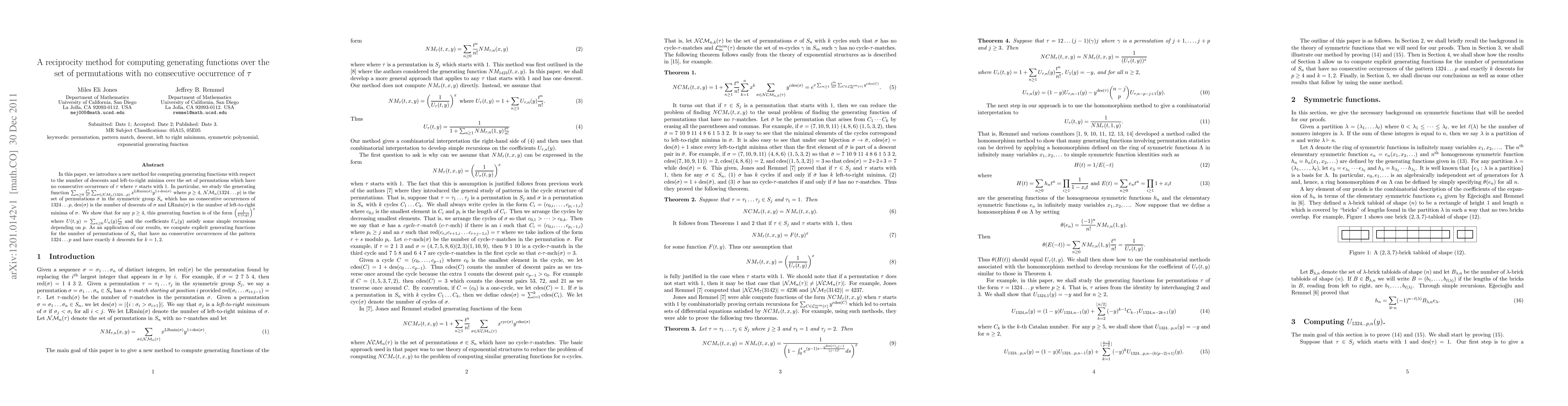 Researchers developed a new method to compute generating functions for permutations with no consecutive occurrence of a specific pattern, which can help analyze patterns in sequences.