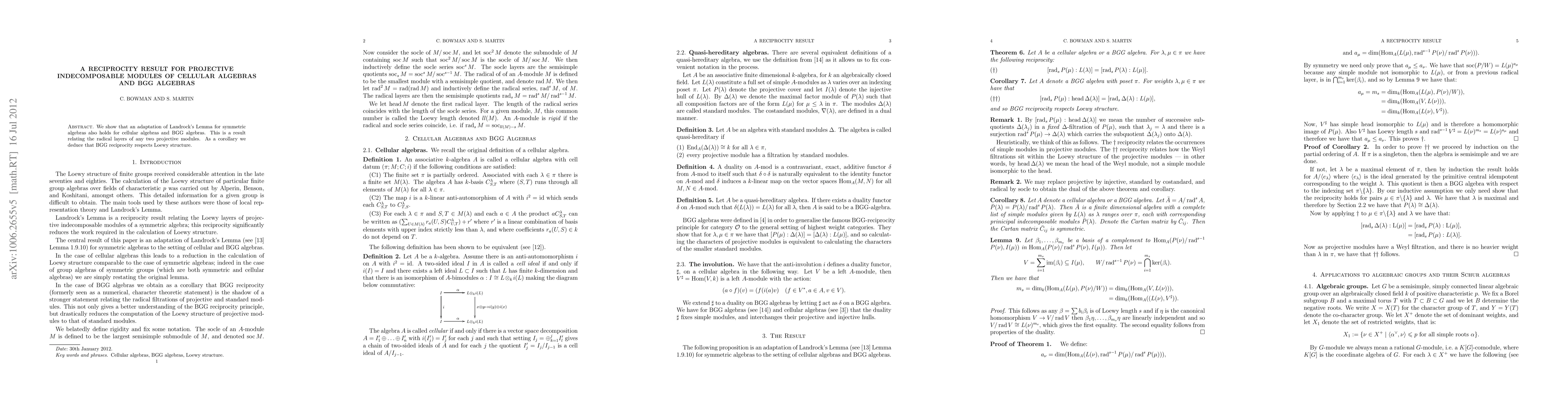 Researchers prove a reciprocity result for projective indecomposable modules of cellular algebras and BGG algebras, relating radical layers of two modules and deducing that BGG reciprocity respects Loewy structure.