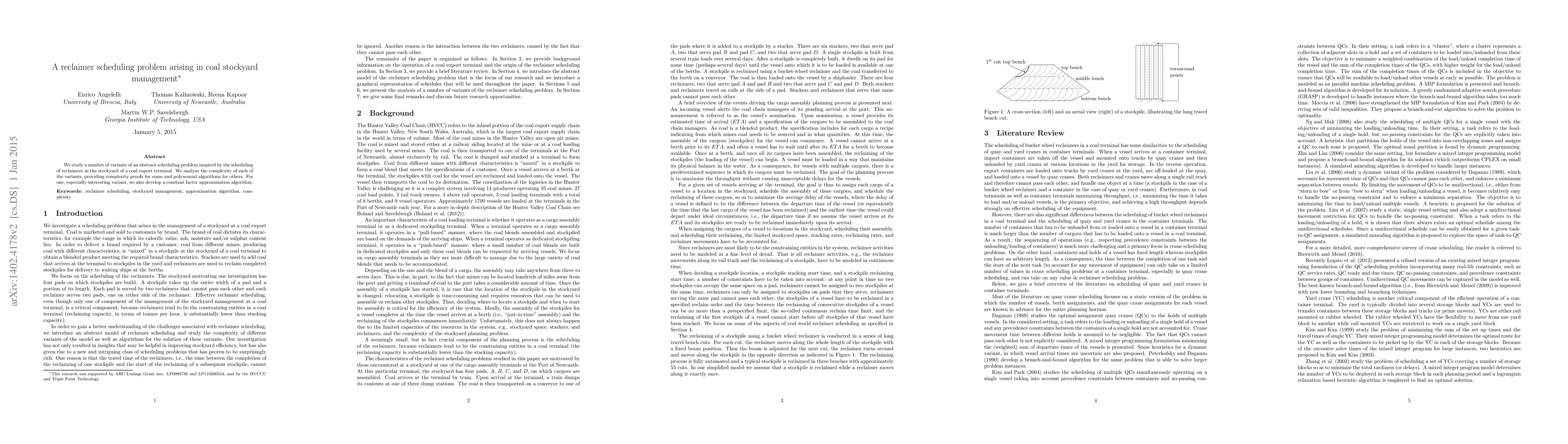 We study a number of variants of an abstract scheduling problem inspired by the scheduling of reclaimers in the stockyard of a coal export terminal. We analyze the complexity of each of the variants, providing complexity proofs for some and polynomial algorithms for others. For one, especially interesting variant, we also develop a constant factor approximation algorithm.
