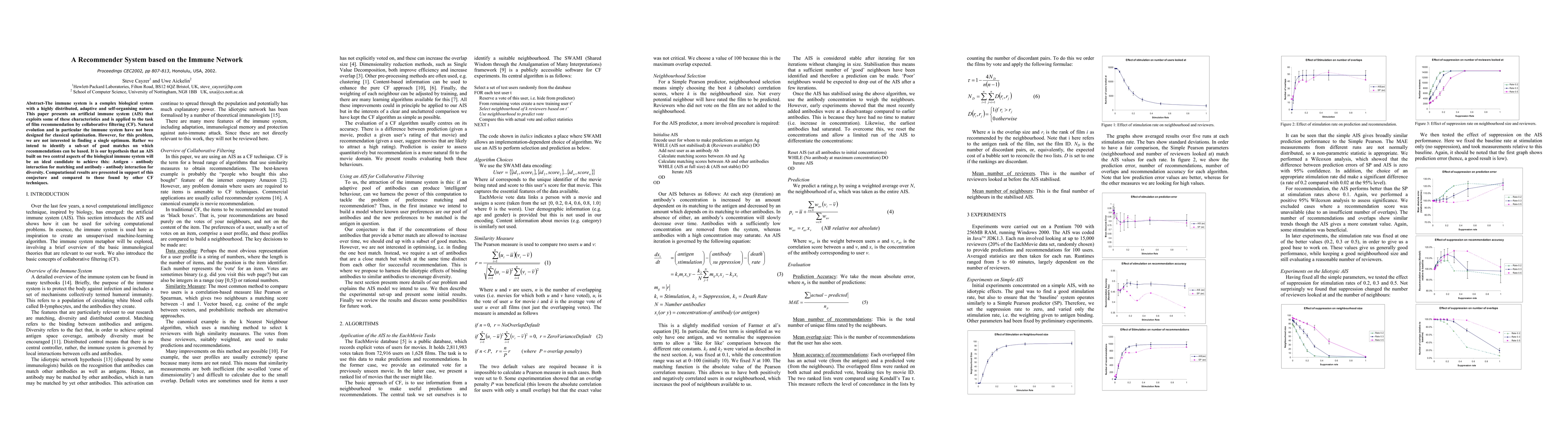 The paper presents an AIS-based recommender system that uses antigen-antibody interactions for matching and antibody-antibody interactions for diversity, offering a novel approach to collaborative filtering.
