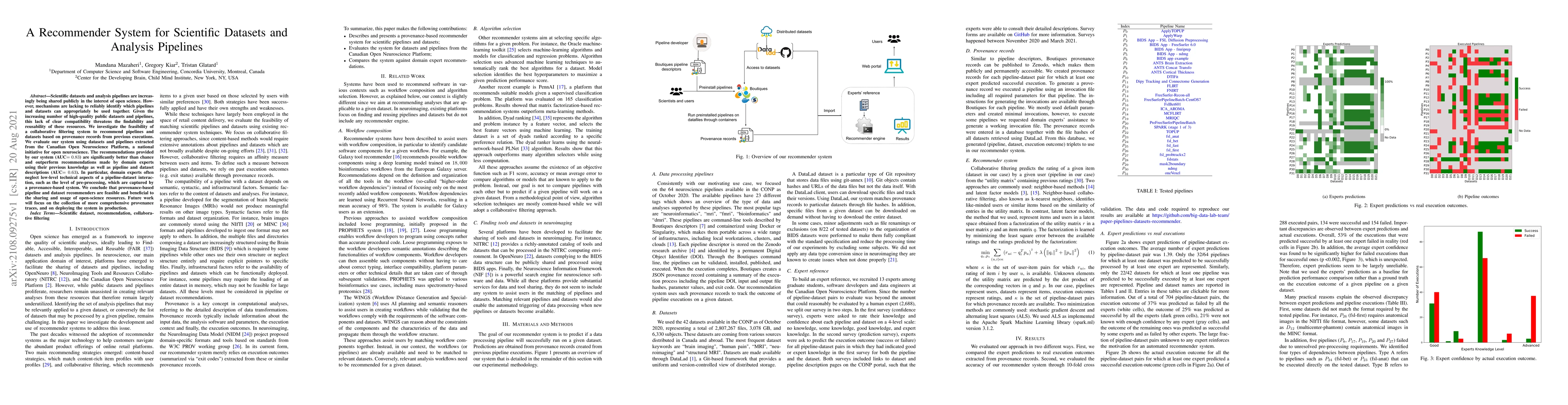 Scientific datasets and analysis pipelines are increasingly being shared publicly in the interest of open science. However, mechanisms are lacking to reliably identify which pipelines and datasets can appropriately be used together. Given the increasing number of high-quality public datasets and pipelines, this lack of clear compatibility threatens the findability and reusability of these resources. We investigate the feasibility of a collaborative filtering system to recommend pipelines and datasets based on provenance records from previous executions. We evaluate our system using datasets and pipelines extracted from the Canadian Open Neuroscience Platform, a national initiative for open neuroscience. The recommendations provided by our system (AUC$=0.83$) are significantly better than chance and outperform recommendations made by domain experts using their previous knowledge as well as pipeline and dataset descriptions (AUC$=0.63$). In particular, domain experts often neglect low-level technical aspects of a pipeline-dataset interaction, such as the level of pre-processing, which are captured by a provenance-based system. We conclude that provenance-based pipeline and dataset recommenders are feasible and beneficial to the sharing and usage of open-science resources. Future work will focus on the collection of more comprehensive provenance traces, and on deploying the system in production.