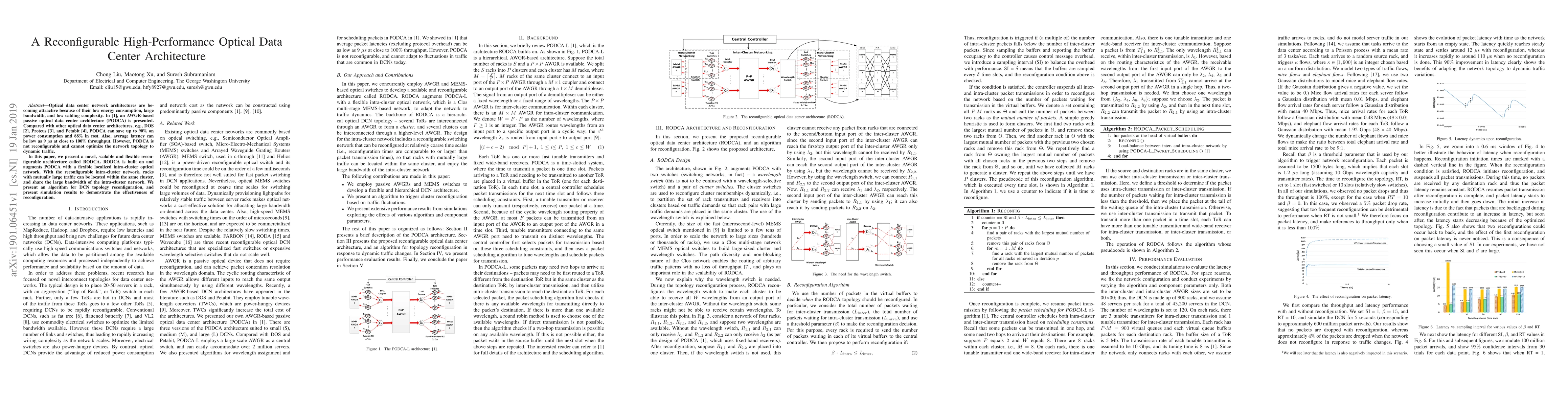 This paper introduces RODCA, a reconfigurable optical data center architecture that enhances the existing PODCA with a flexible intra-cluster network, enabling dynamic optimization of network topology to adapt to changing traffic patterns. Simulation results show significant improvements in performance and efficiency.
