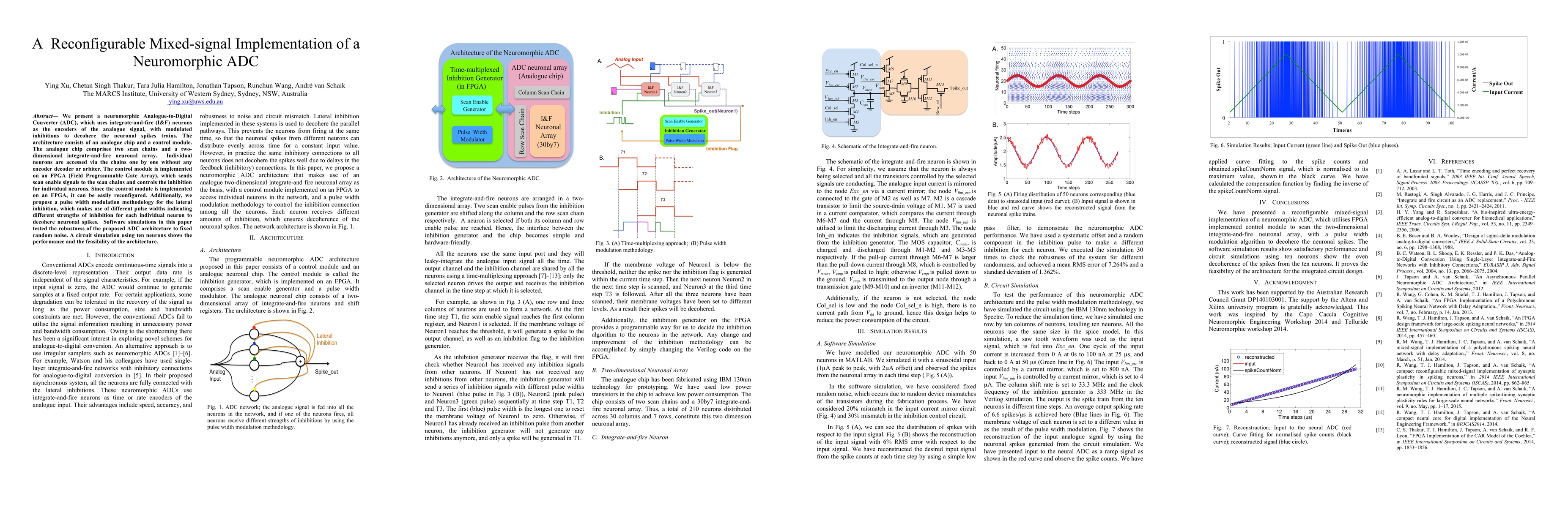 A reconfigurable mixed-signal ADC using integrate-and-fire neurons with modulated inhibitions is proposed for efficient analogue-to-digital conversion. The architecture's flexibility makes it suitable for various applications.