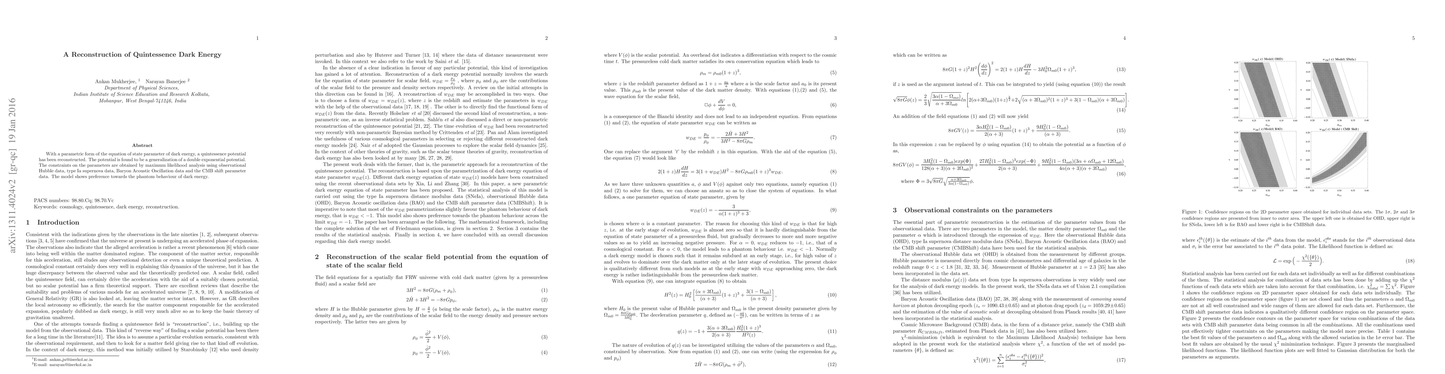 The paper presents a method to reconstruct a quintessence dark energy potential using a parametric equation of state and constrains it with various observational datasets, leading to a potential that favors phantom behavior.