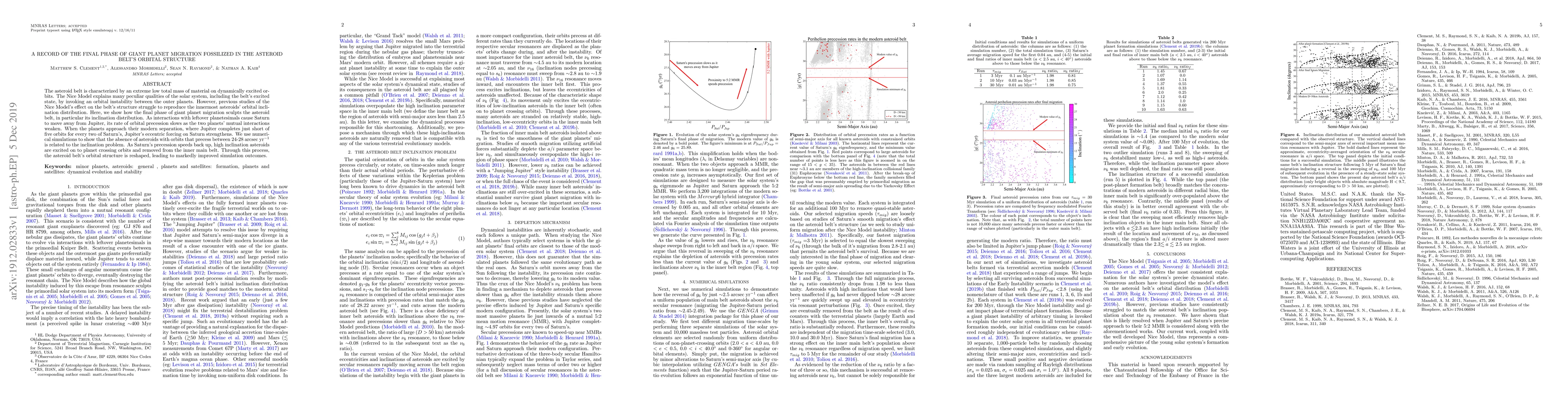 This paper demonstrates how the final phase of giant planet migration, particularly the orbital dynamics between Jupiter and Saturn, influences the asteroid belt's orbital inclination distribution. Numerical simulations reveal that the removal of high inclination asteroids during Saturn's increased precession rate reshapes the belt, resolving previous discrepancies in modeling the belt's structure.