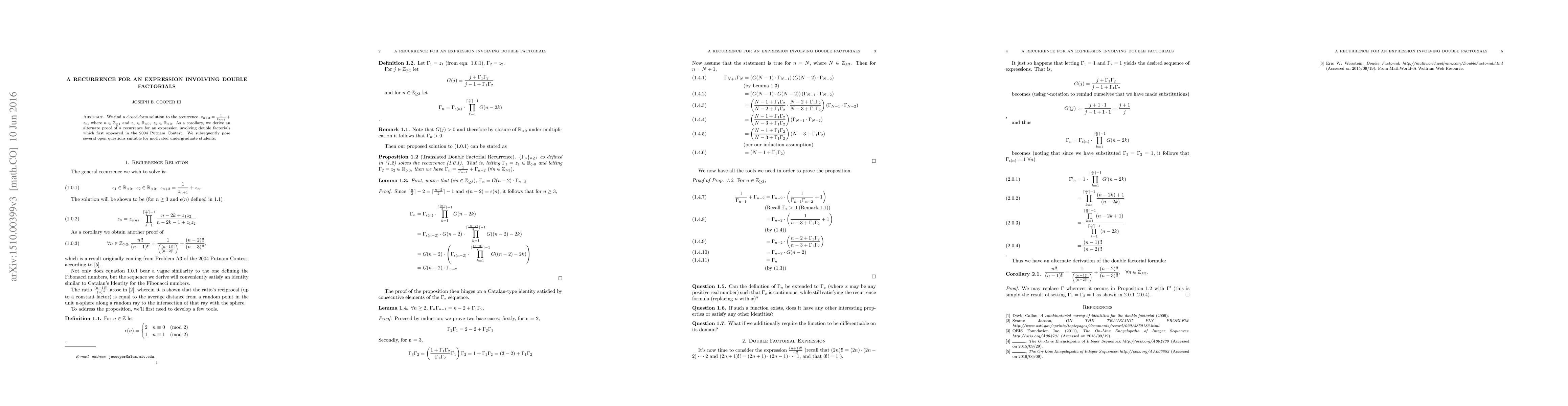 We find a closed-form solution to the recurrence $\ z_{n+2} = \frac{1}{z_{n+1}} + z_n$, where $n \in \mathbb Z_{\geq 1}$ and $z_1 \in \mathbb R_{> 0},\ z_2 \in \mathbb R_{> 0}$. As a corollary, we derive an alternate proof of a recurrence for an expression involving double factorials which first appeared in the 2004 Putnam Contest. We subsequently pose several open questions suitable for motivated undergraduate students.