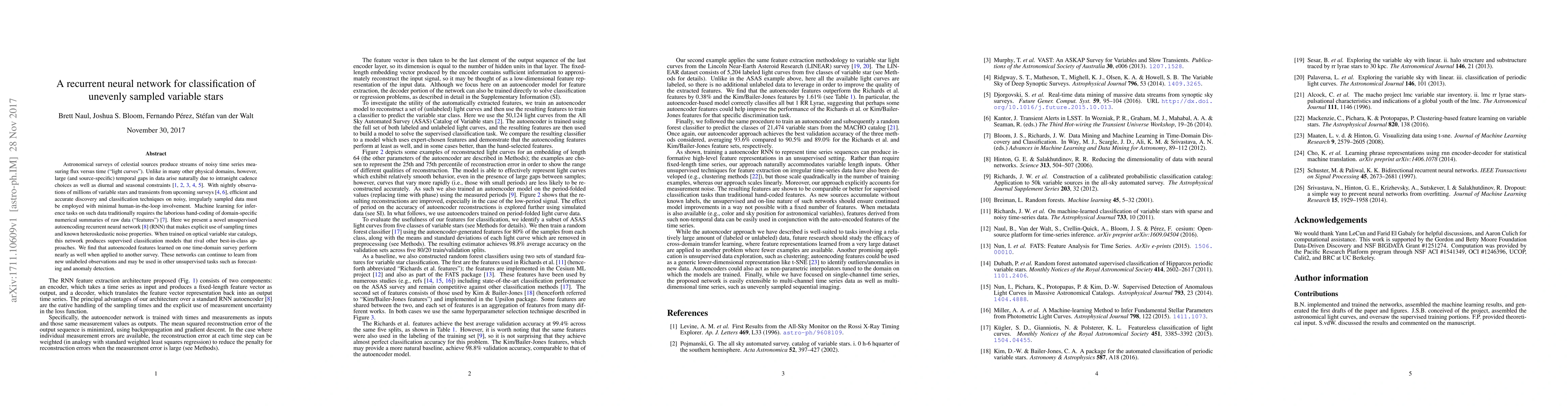 A novel autoencoding recurrent neural network (RNN) is presented for classifying unevenly sampled variable stars in astronomical surveys, achieving performance rivaling top-class approaches with minimal human-involvement.