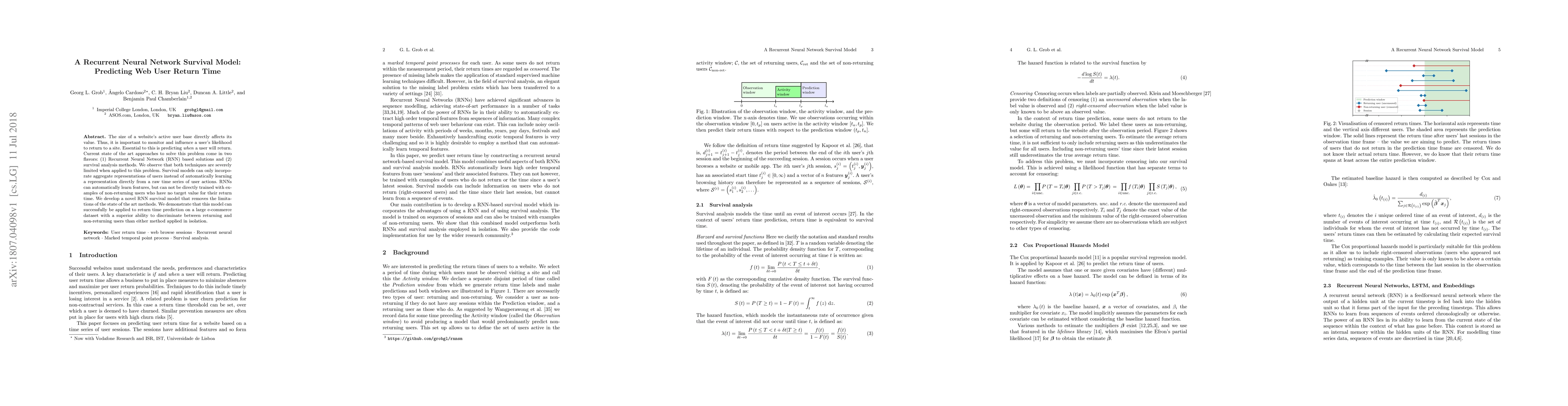 A new Recurrent Neural Network model predicts when users will return to a website, outperforming existing methods in discriminating between returning and non-returning users.