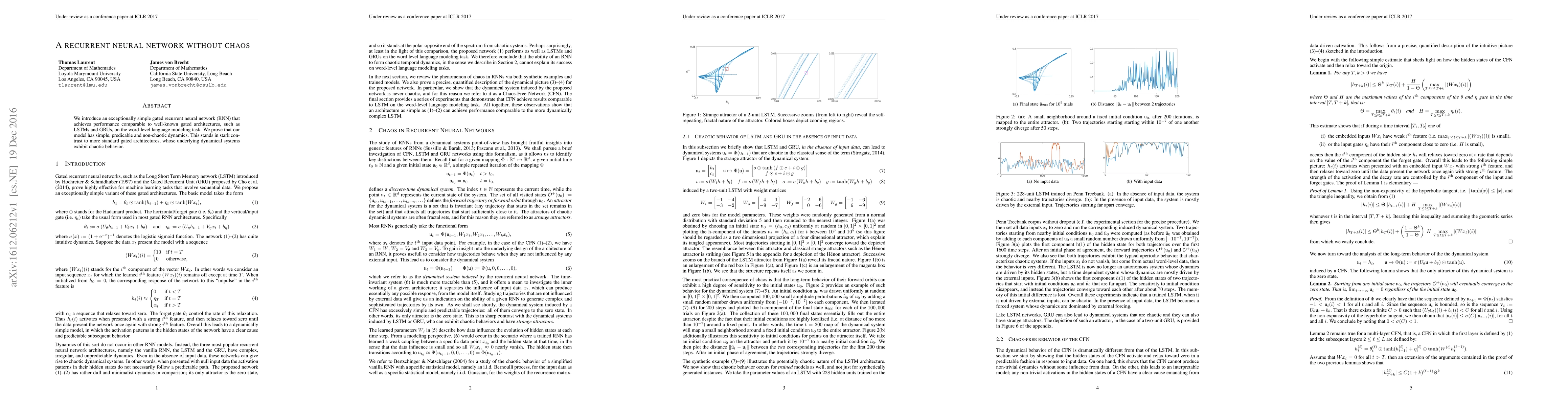 This paper presents a simple gated RNN that performs comparably to LSTMs and GRUs in word-level language modeling, while demonstrating predictable, non-chaotic dynamics in contrast to the chaotic behavior of standard gated architectures.