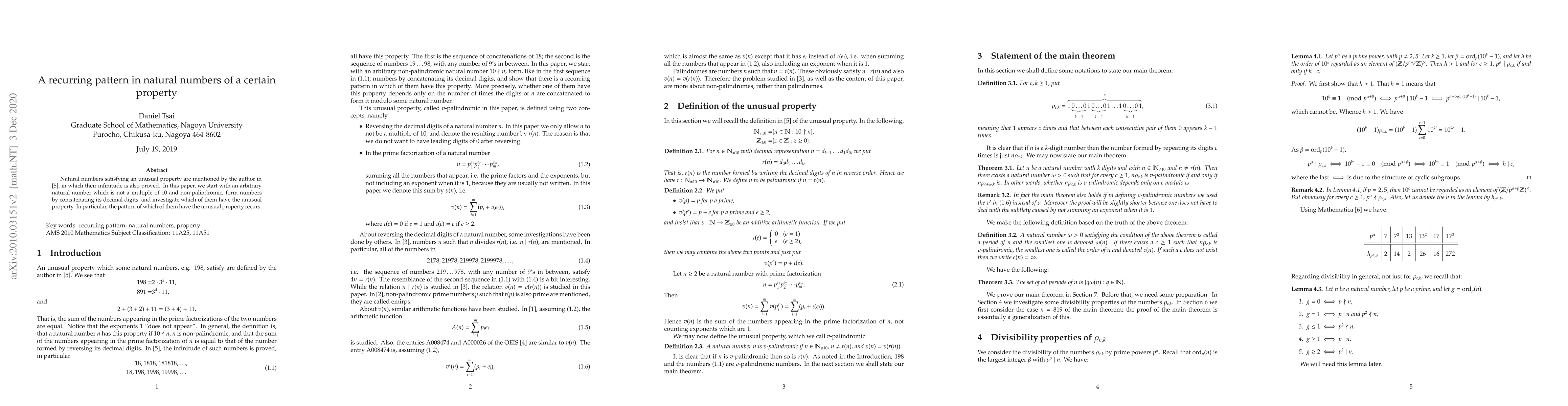 Natural numbers satisfying an unusual property are mentioned by the author in [5], in which their infinitude is also proved. In this paper, we start with an arbitrary natural number which is not a multiple of 10 and non-palindromic, form numbers by concatenating its decimal digits, and investigate which of them have the unusual property. In particular, the pattern of which of them have the unusual property recurs.