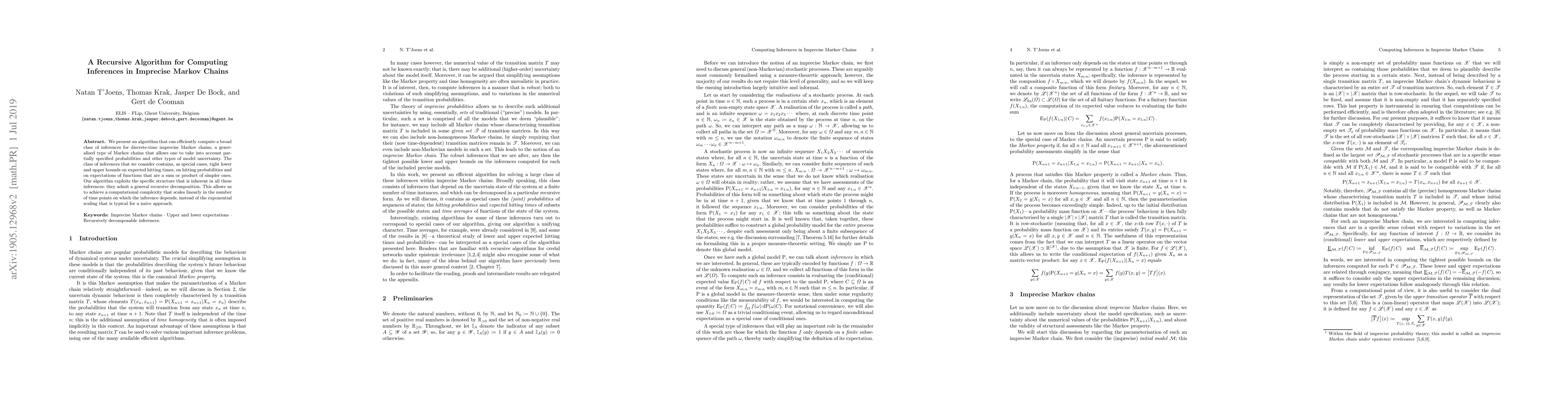 This paper introduces a recursive algorithm for efficiently computing various inferences in imprecise Markov chains, which handle partially specified probabilities and model uncertainty. The algorithm leverages a recursive decomposition of the inferences, achieving linear computational complexity instead of the typical exponential scaling.