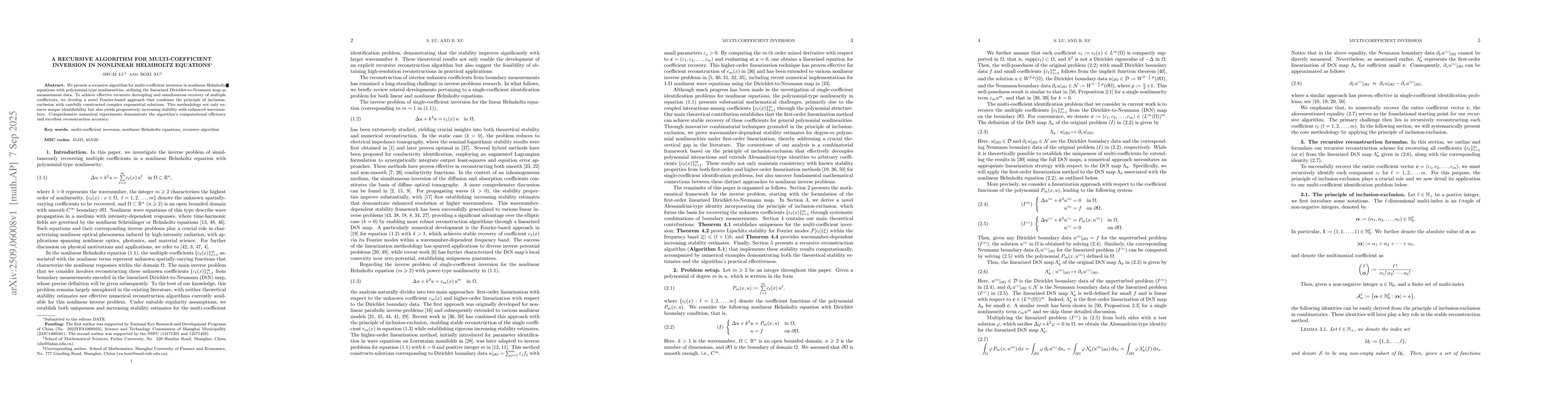 We present a recursive algorithm for multi-coefficient inversion in nonlinear Helmholtz equations with polynomial-type nonlinearities, utilizing the linearized Dirichlet-to-Neumann map as measurement data. To achieve effective recursive decoupling and simultaneous recovery of multiple coefficients, we develop a novel Fourier-based approach that combines the principle of inclusion-exclusion with carefully constructed complex exponential solutions. This methodology not only ensures unique identifiability but also yields progressively increasing stability with enhanced wavenumbers. Comprehensive numerical experiments demonstrate the algorithm's computational efficiency and excellent reconstruction accuracy.