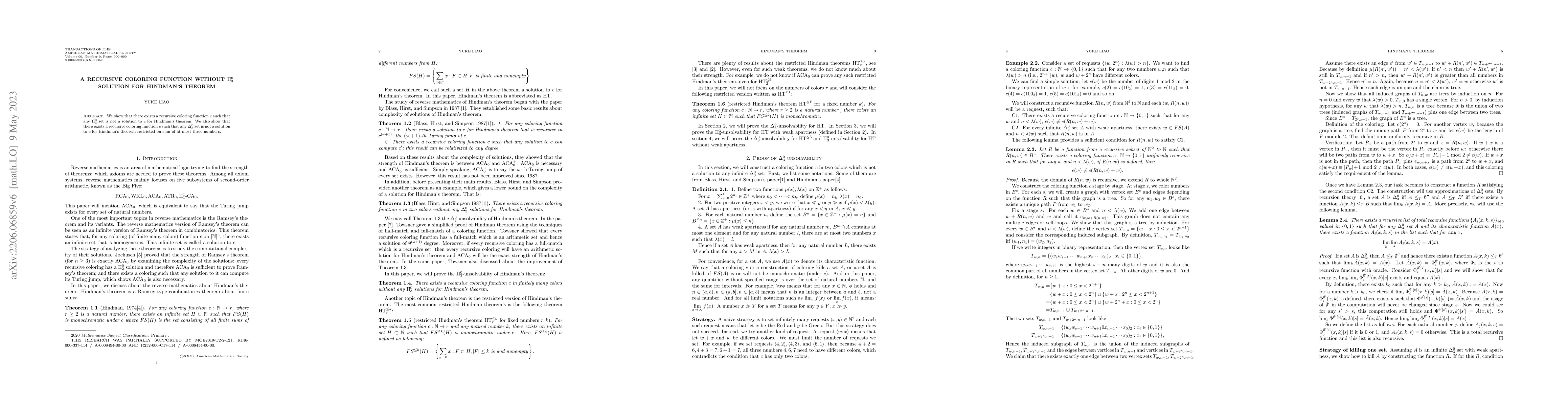 This paper demonstrates the existence of a recursive coloring function that prevents any $\Pi^0_3$ set from solving Hindman's theorem and any $\Delta^0_3$ set from solving its restricted version involving sums of at most three numbers. This result highlights the complexity of solutions in combinatorial number theory.