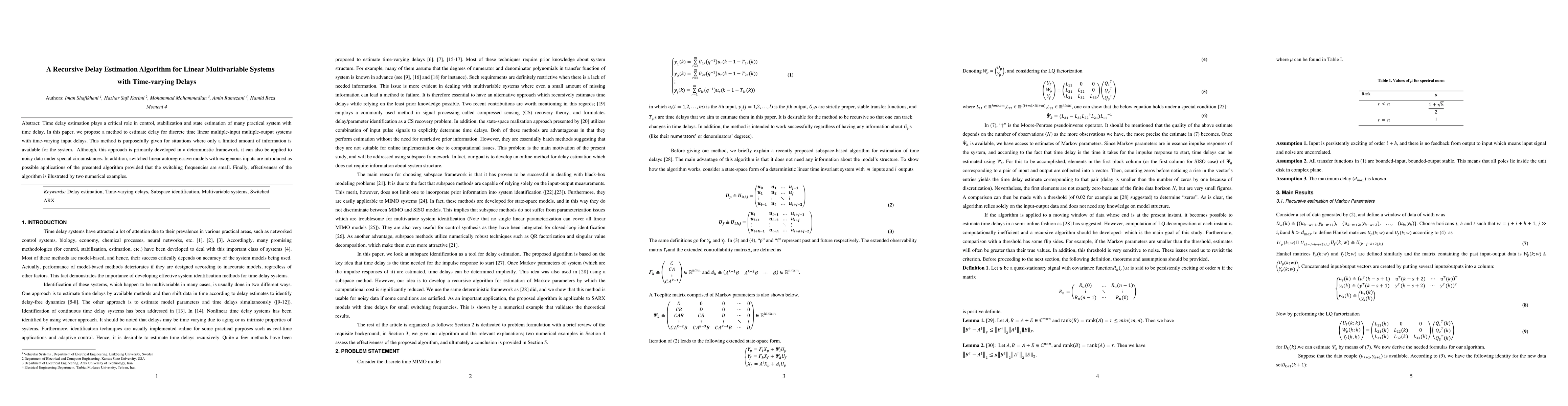 This paper proposes a recursive delay estimation algorithm for linear multivariable systems with time-varying delays, applicable in scenarios with limited system information. The method is demonstrated effective through numerical examples and can handle noisy data under certain conditions.