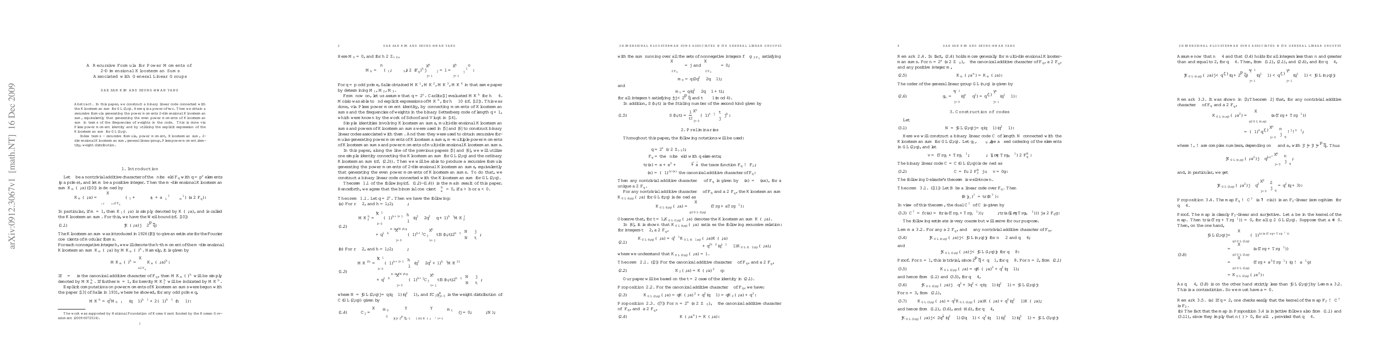 This paper constructs a binary linear code linked to the Kloosterman sum for $GL(2,q)$, where $q$ is a power of two. It derives a recursive formula for generating the power moments of the 2-dimensional Kloosterman sum, using the Pless power moment identity and the explicit expression of the Kloosterman sum.