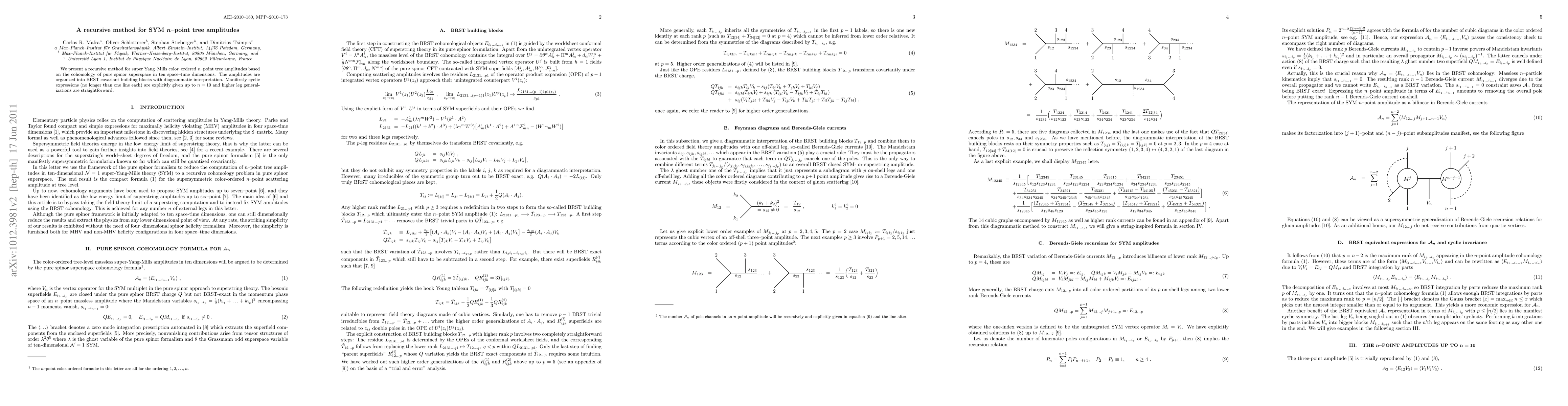 The paper introduces a recursive method for calculating super Yang-Mills color-ordered n-point tree amplitudes in ten dimensions, using cohomology of pure spinor superspace. It offers cyclic expressions for amplitudes up to n=10, with straightforward generalizations for higher legs.