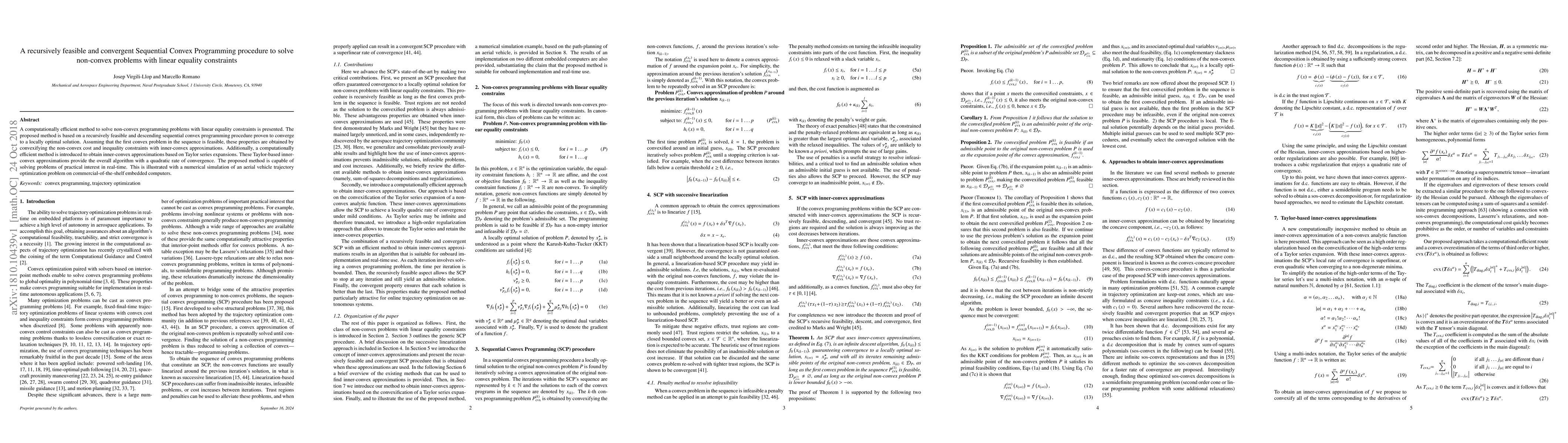 This paper proposes a recursively feasible and convergent sequential convex programming method for solving non-convex optimization problems with linear equality constraints. It leverages inner-convex approximations via Taylor series expansions to achieve a quadratic rate of convergence and demonstrates its effectiveness through a real-time trajectory optimization simulation for aerial vehicles.