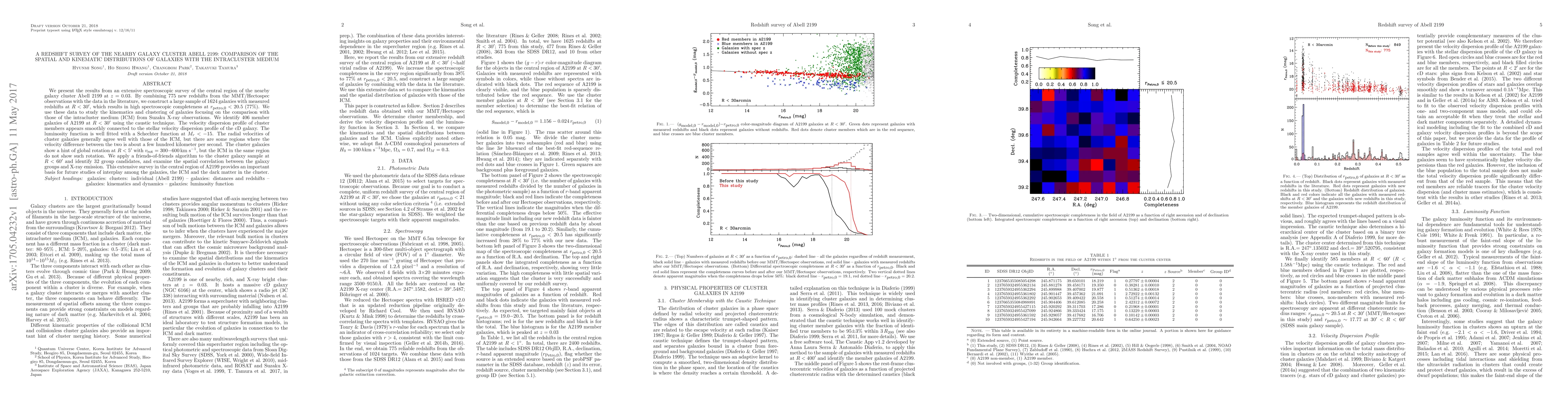 We present the results from an extensive spectroscopic survey of the central region of the nearby galaxy cluster Abell 2199 at $z=0.03$. By combining 775 new redshifts from the MMT/Hectospec observations with the data in the literature, we construct a large sample of 1624 galaxies with measured redshifts at $R<30^\prime$, which results in high spectroscopic completeness at $r_{\rm petro,0}<20.5$ (77%). We use these data to study the kinematics and clustering of galaxies focusing on the comparison with those of the intracluster medium (ICM) from Suzaku X-ray observations. We identify 406 member galaxies of A2199 at $R<30^\prime$ using the caustic technique. The velocity dispersion profile of cluster members appears smoothly connected to the stellar velocity dispersion profile of the cD galaxy. The luminosity function is well fitted with a Schechter function at $M_r<-15$. The radial velocities of cluster galaxies generally agree well with those of the ICM, but there are some regions where the velocity difference between the two is about a few hundred kilometer per second. The cluster galaxies show a hint of global rotation at $R<5^\prime$ with $v_{\rm rot}=300{-}600\,\textrm{km s}^{-1}$, but the ICM in the same region do not show such rotation. We apply a friends-of-friends algorithm to the cluster galaxy sample at $R<60^\prime$ and identify 32 group candidates, and examine the spatial correlation between the galaxy groups and X-ray emission. This extensive survey in the central region of A2199 provides an important basis for future studies of interplay among the galaxies, the ICM and the dark matter in the cluster.