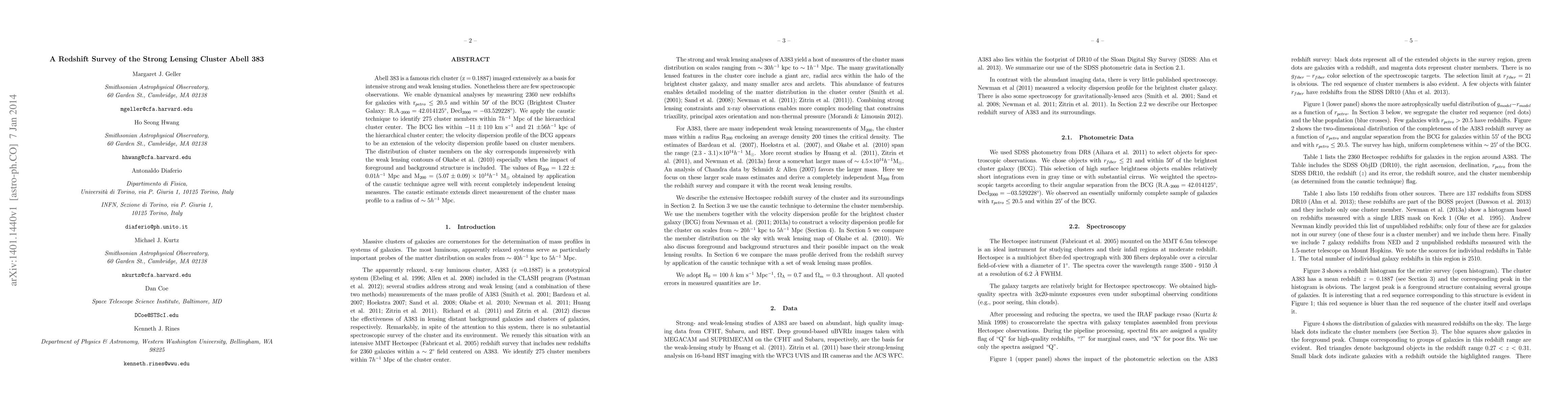 This study provides 2360 new redshift measurements for galaxies in the Abell 383 cluster, enabling detailed dynamical analyses using the caustic technique. The analysis identifies 275 cluster members and confirms the cluster's mass profile, with R$_{200}$ and M$_{200}$ values consistent with independent lensing measures.