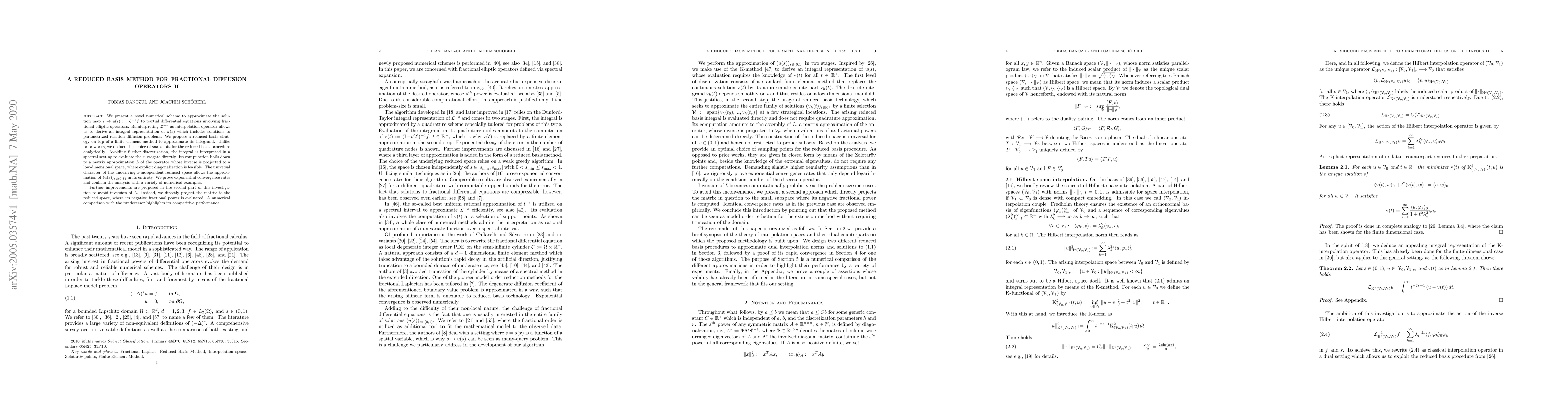 This paper introduces a reduced basis method for approximating solutions of fractional diffusion equations using a spectral approach. It analytically determines snapshots for the reduced basis and avoids further discretization, achieving exponential convergence rates and competitive performance.